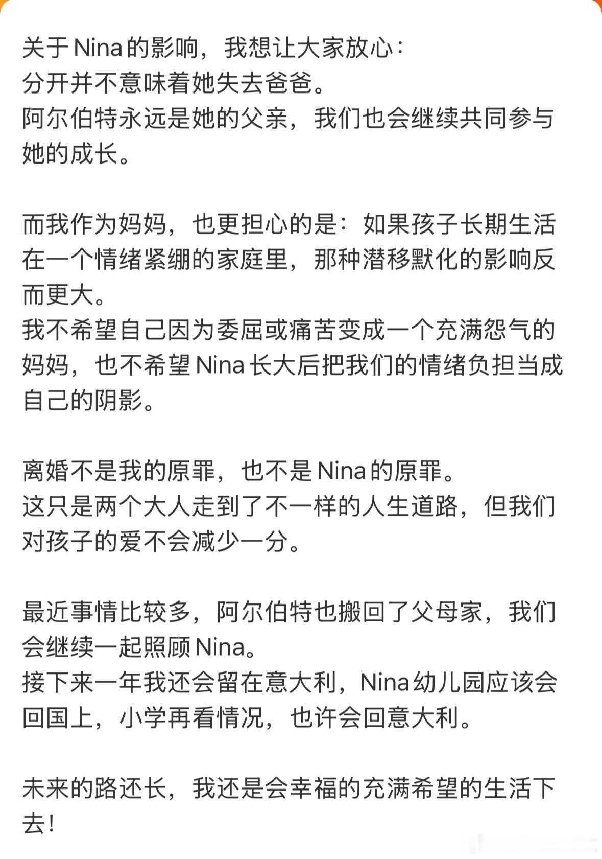 我去!千里寻椰和她男友分手了两人虽然分开但是会共同抚养nina成长千里寻椰官宣离婚