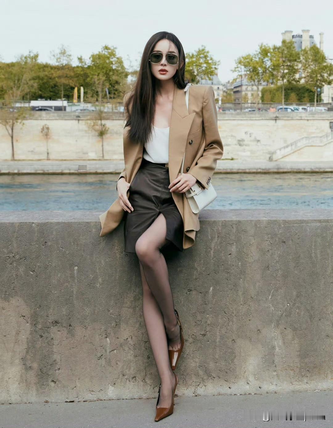古力娜扎这身真是把又飒又媚玩明白了! 西装皮裙配黑丝,正经里带点野,御姐气场直接