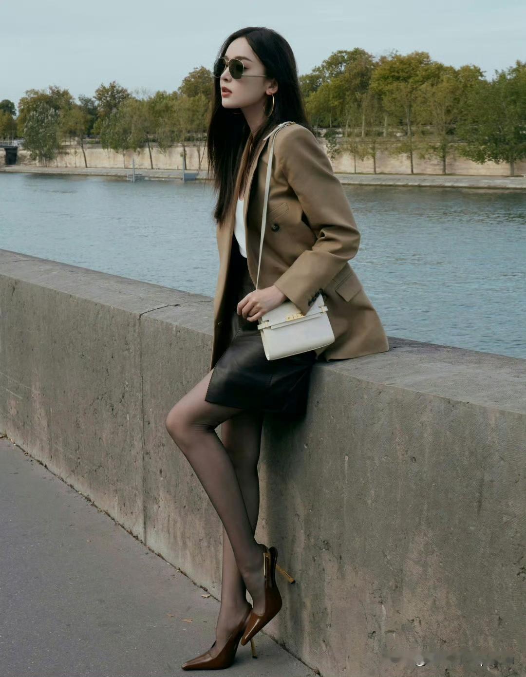 古力娜扎这身真是把又飒又媚玩明白了! 西装皮裙配黑丝,正经里带点野,御姐气场直接拉满。 内搭白T巧妙中和了性感度,深红皮鞋点睛之笔,像高脚杯里的红酒——危险又迷人。 黑丝穿不好容易俗,但她用硬朗单品平衡得刚好,这套可以直接封为“姐系穿搭模板”了!