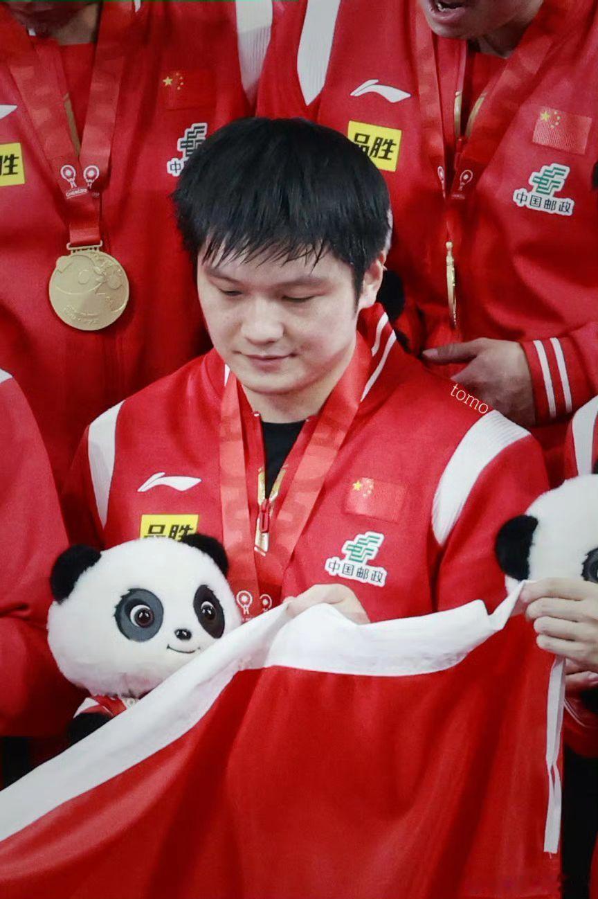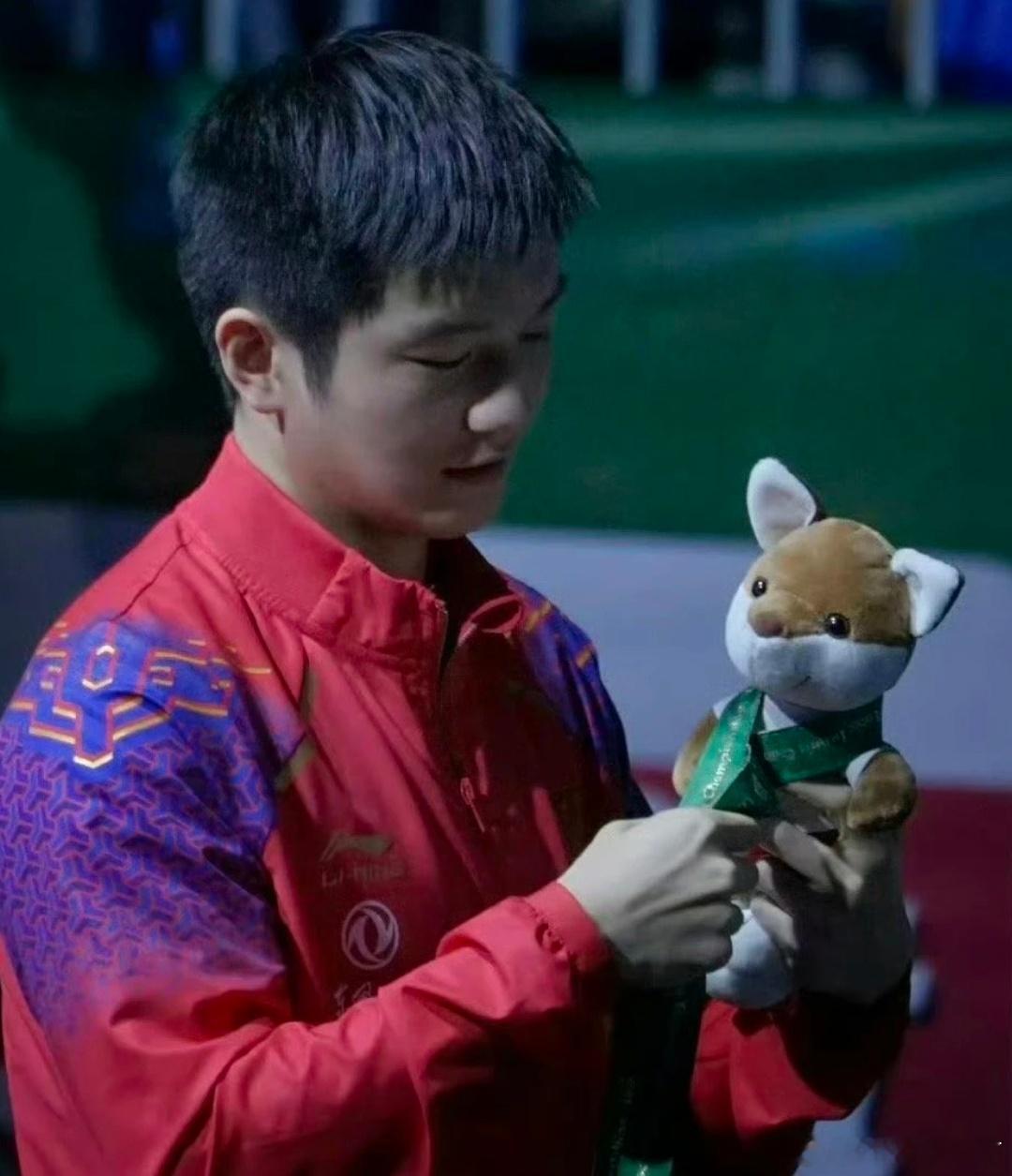 樊振东与他的冠军玩偶们,每一帧都是可爱翻倍。