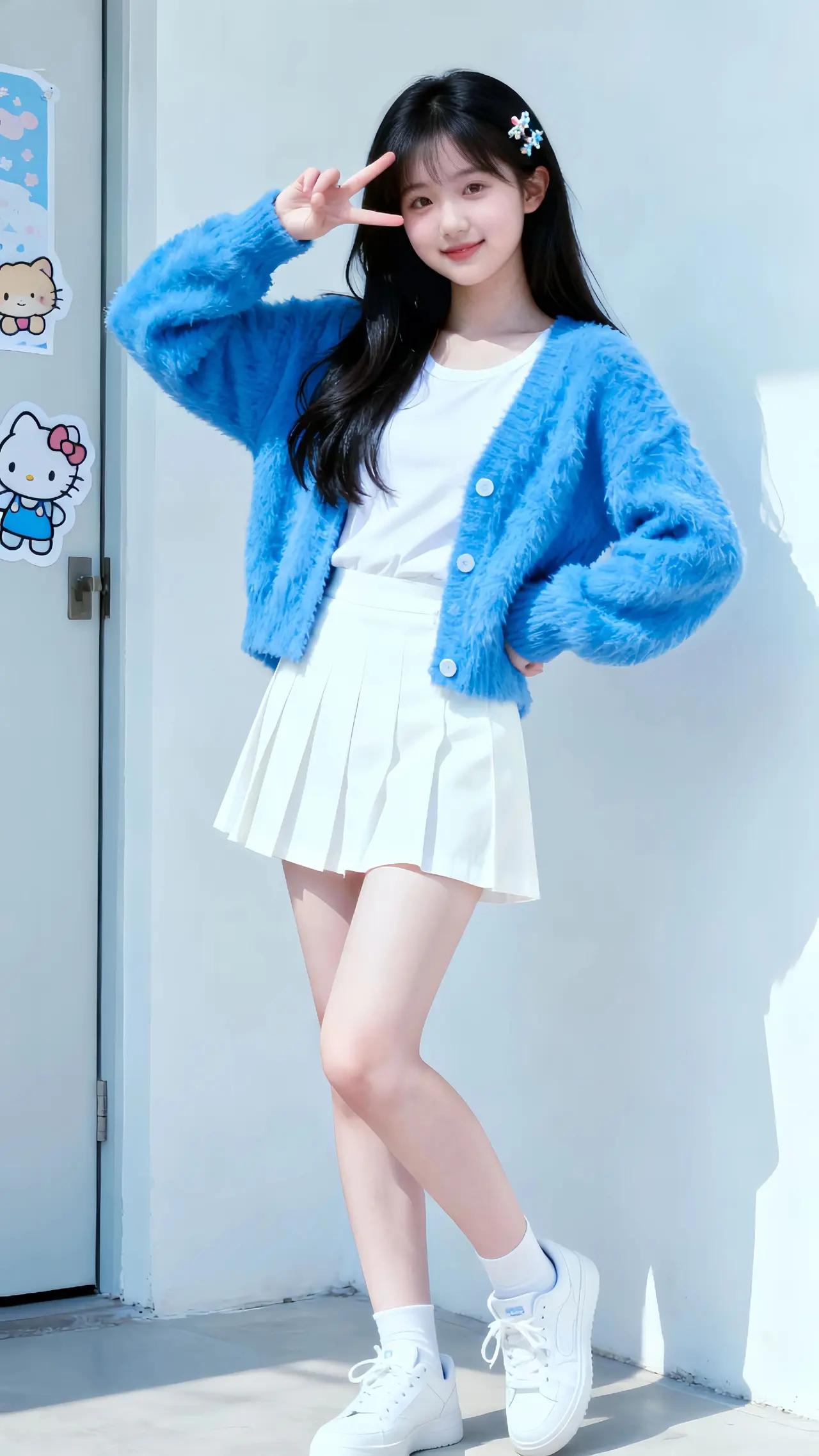 冬日暖阳下,蓝色毛衣女孩,甜美笑容,温暖如春。高雅气质美女高清美女