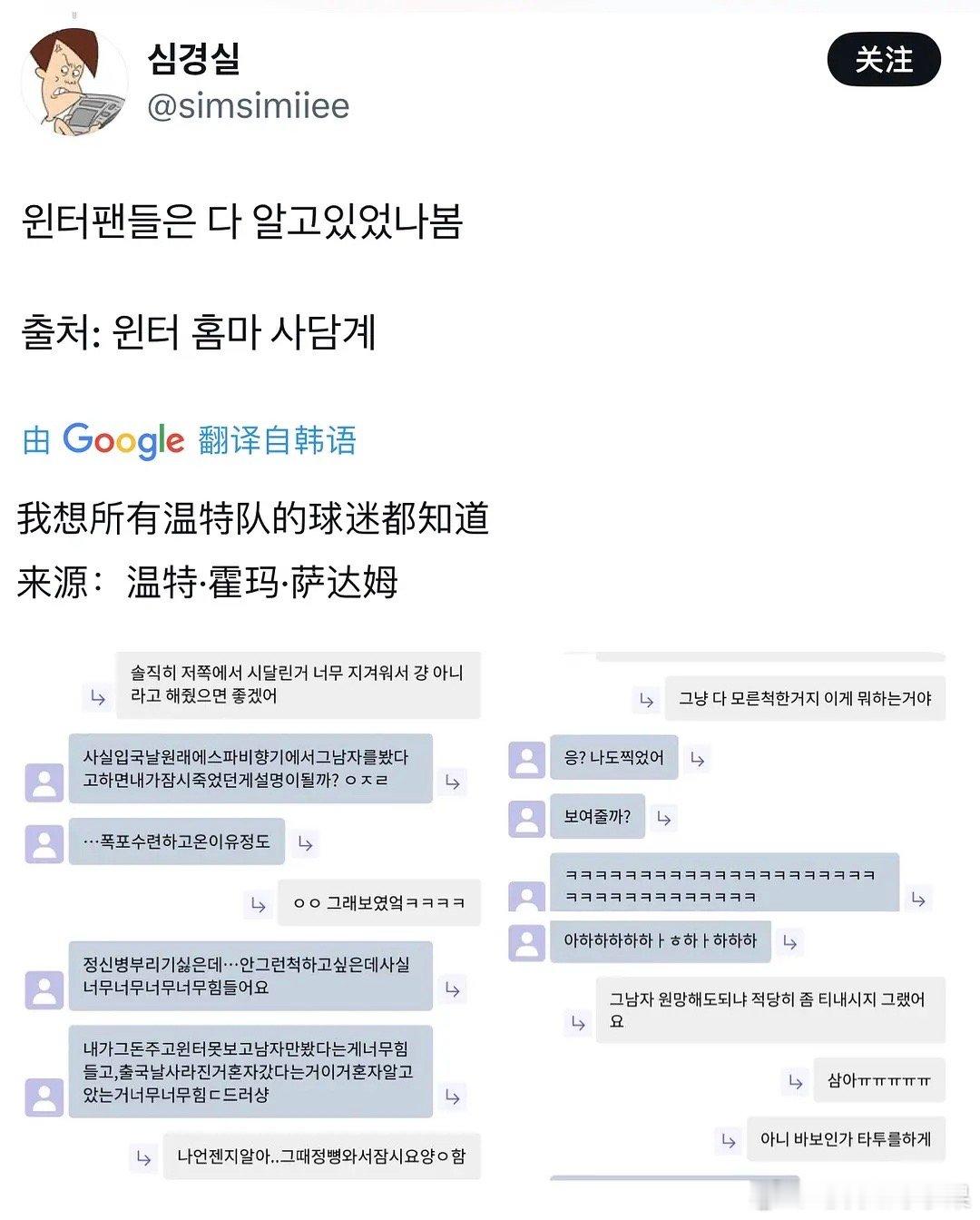 目前正在热转中的winter粉丝小号爆料“所有粉丝都知道田柾国和金冬天热恋”田柾