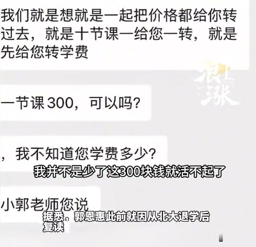 近日,传奇学霸郭恩惠称:自己做家教被骗了!来自河南焦作的郭恩惠,在2019年以669分的高考成绩进入了北大医学部护理学专业,然而才上了一节课,他就发现自己对这个专业完全没兴趣,当即选择退学。 退学复读期间,他多次在网上公开说明退学缘由,无法接受自己带着帽子服侍别人的感觉,自己的骄傲、自信也不允许,应该去高科技行业实现自己的理想抱负。 同时,他也用自己的亲身经历告诫大家,选择专业一定要谨慎,不要效仿自己,浪费一年再复读一次。 2020年,郭恩惠高考成绩再创新高,以716分的成绩被清华大学电气工程专业录取。消息一出,网友们纷纷感叹学霸就是学霸,北大不喜欢马上换清华。 现在,郭恩惠是清华大学软件工程专业的在读研究生,课余时间他还在网上从事线上家教服务。 前段时间,沈阳市一名高三生的家长在网上联系了郭恩惠,想请他给孩子辅导数学。开始时家长提出1.5小时课时150元,双方经过一番讨价还价,最后确定是辅导1.5小时费用300元。 第一次上课期间,孩子班主任打来电话,招呼不打直接断开视频授课。后面回来后,学习态度又很浮躁,基础差却没耐心,一直要求郭恩惠给出速成的解题技巧。 学生的种种表现,让郭恩惠在第一节课结束后就决定终止辅导。他跟家长说明情况并索要课时费,没想到学生家长不回信息,不接电话,直接失联。 气愤的郭恩惠报了警,但是300元达不到诈骗立案标准不予受理,民警建议他去协商或起诉解决。 选择曝光此事的郭恩惠说:“自己并不是缺这300元生活,就是不愿意纵容这种占便宜的行为。” 之前网友称北京地区的孩子课外辅导,两节数学课2500元。清华大学的传奇学霸辅导,1.5小时才300元,这真是白菜价了。 孩子成绩本来就不好,人家认认真真给做了提升计划,还想一步登天,神仙也教不好。1.5小时一分钟不少的辅导了,300元就该付给人家,这样的家长能教育好孩子才怪。 网友笑称:学霸遭遇“滑铁卢”,清华学不到的课程社会给补上了!