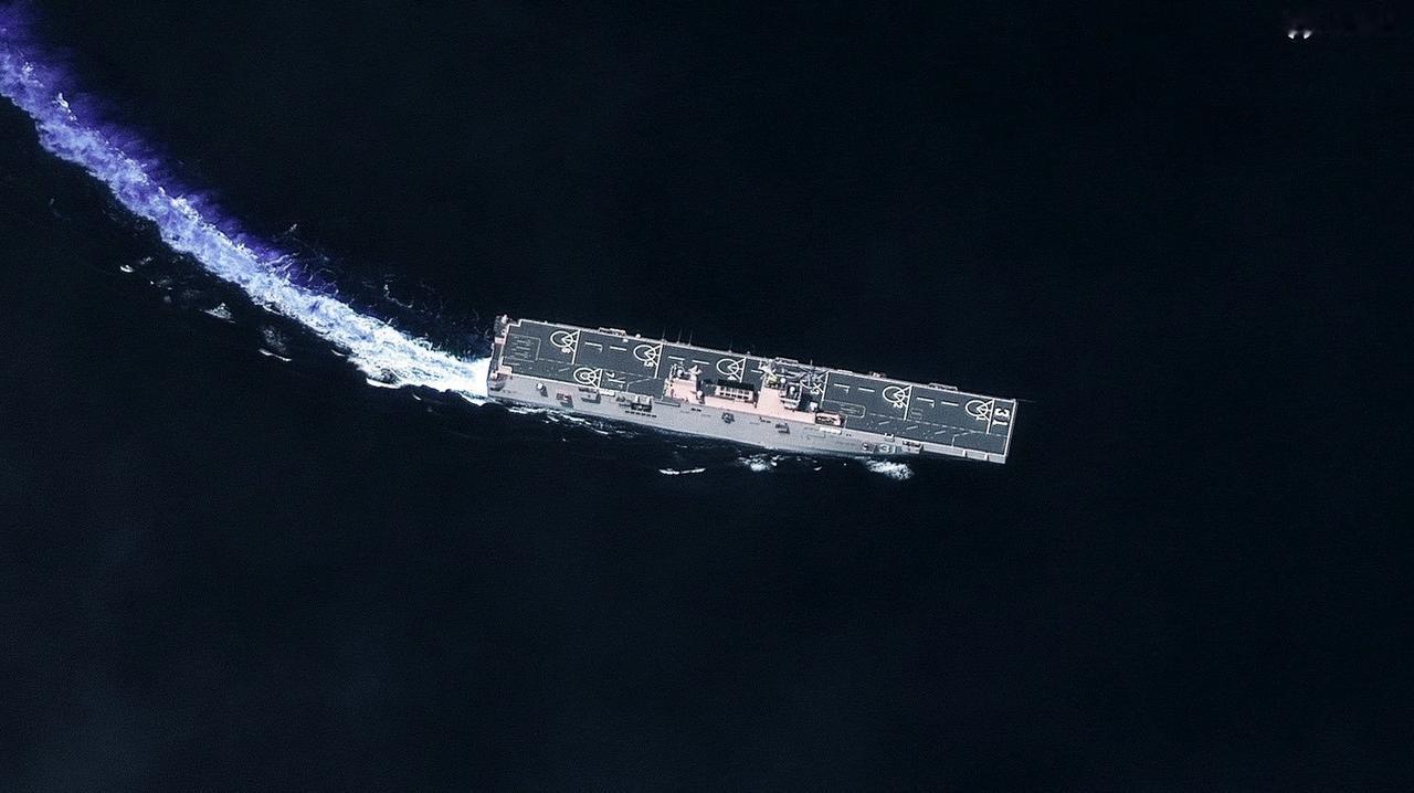 美国地理空间情报公司 Vantor 用高分辨率商业卫星捕捉到的,在菲律宾海活动的中国海军舰艇编队(075两攻舰海南舰、055驱逐舰延安舰、054A护卫舰、903A补给舰骆马湖舰),确实够清晰 可以看到,骆马湖舰在为延安舰、054A进行“一横一纵”海上补给,而海南舰已脱离大部队有一段距离 编队后续动向,是复刻去年055遵义舰编队“铁矿石回家探亲”环澳?还是绕过菲律宾南部就班师回朝,让土澳虚惊一场?拭目以待