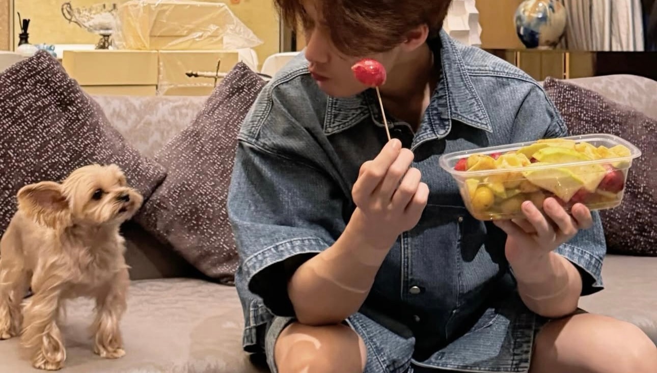 檀健次在IG更新了他和呆球的幸福日常好可爱的文案www🎶🐶🥕🍿好可爱的?