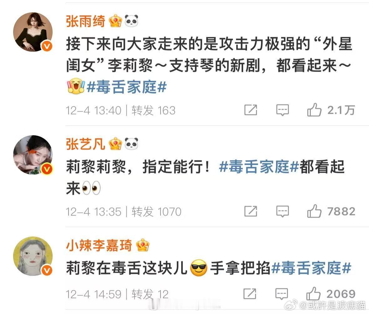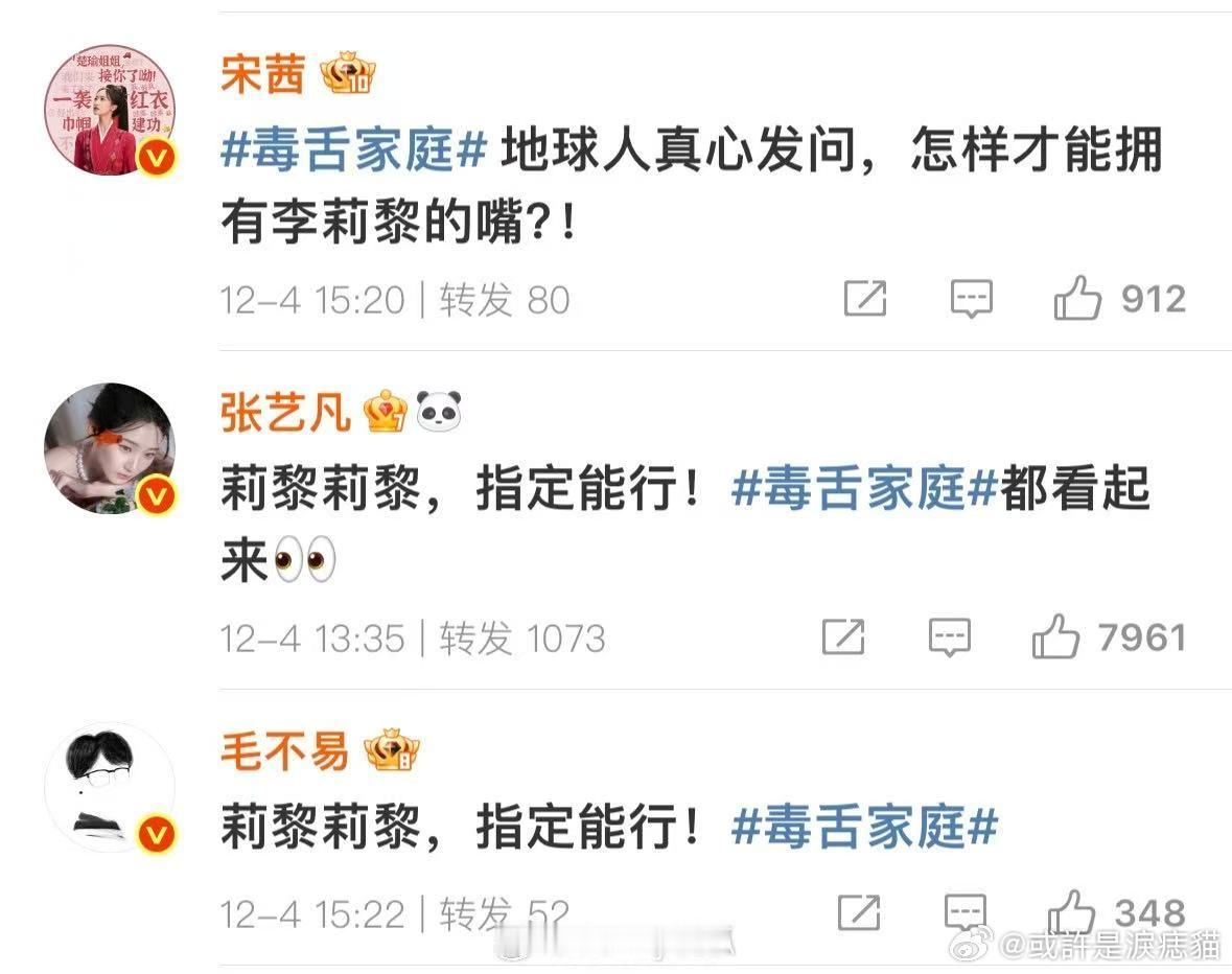李雪琴摇人为毒舌家庭打call 李雪琴这号召力绝了!庞博、小辣李嘉琦支持,外星视角解构家庭关系超新颖,中午12点腾讯视频值得N刷~
