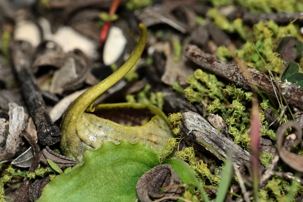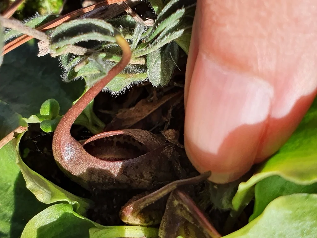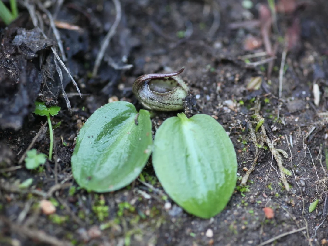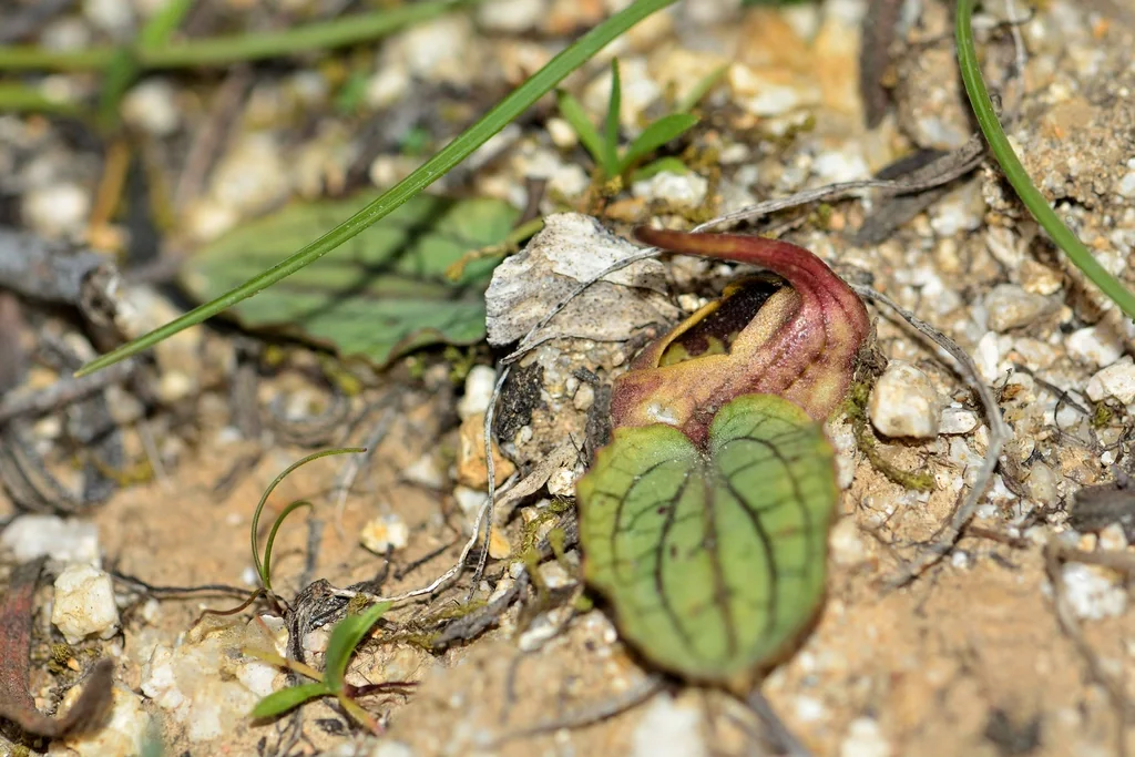 小囊芋有3.5到6厘米长的椭圆形叶子,类似于许多天南星幼苗的叶子。花序长2.5厘米,弯曲,有一个不同寻常的佛焰苞。锅铲形状像鸡蛋,呈绿褐色,上面有点。鸡蛋形状的锅铲内部分为两个腔室。在一个室中容纳一朵雌花,而在另一个室内容纳8至10朵雄花。这些种子有一个油滑体。然而,种子很少形成,因为这种物种的繁殖率很低。