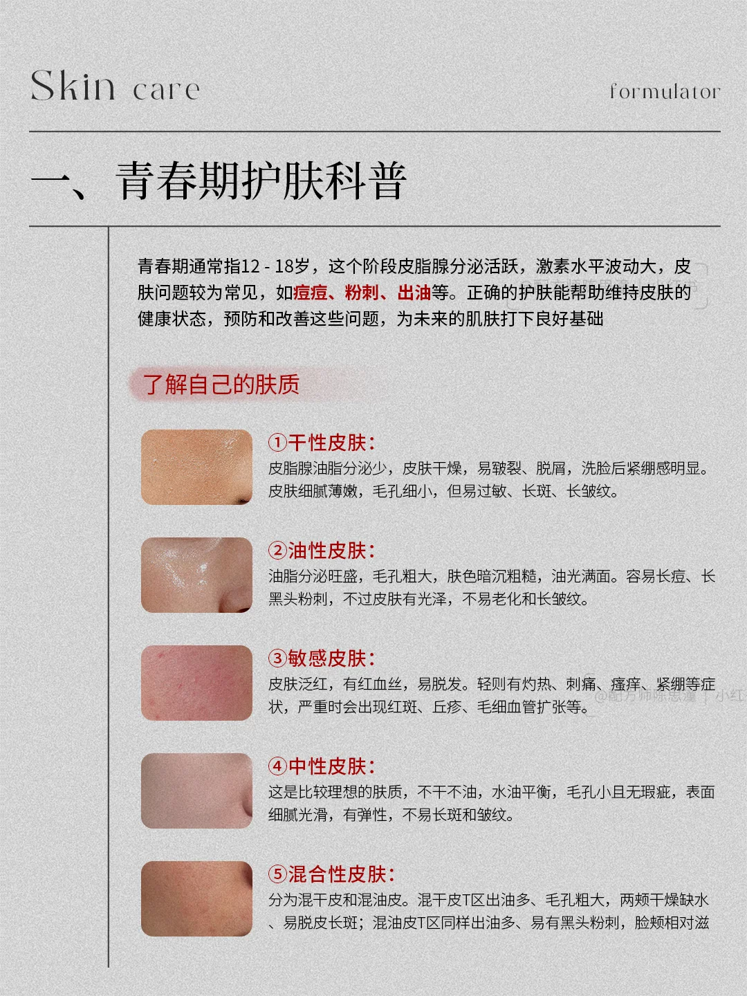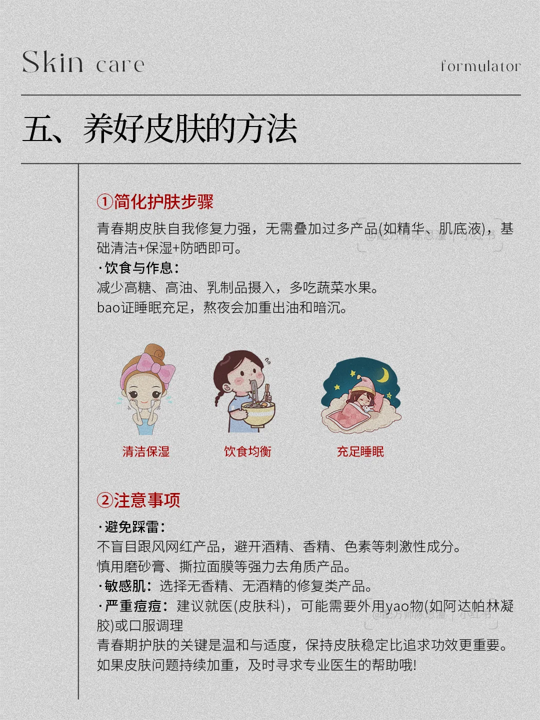 青春期是肌肤变化的重要时期,通过了解自己的肤质,掌握正确的护肤方法和注意事项,特别是针对痘肌的护理,养成良好的生活习惯和护肤细节,就能养出健康、美丽的肌肤。 • 青春期护肤科普 •了解自己的肤质 •青春期护肤思路与注意事项 •青春期会长痘原理 •青春期痘肌护理 •养好皮肤的方法 一起来关注了解一下吧,下期还想看什么可以❤➕🍎告诉我哦配方师 皮肤管理知识 知识科普 青春期孩子陪伴成长 青春期护肤 青春期祛痘 青春期养肤 祛痘