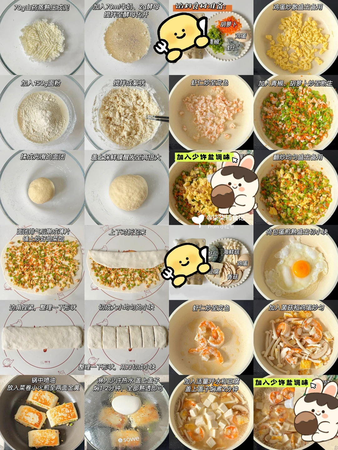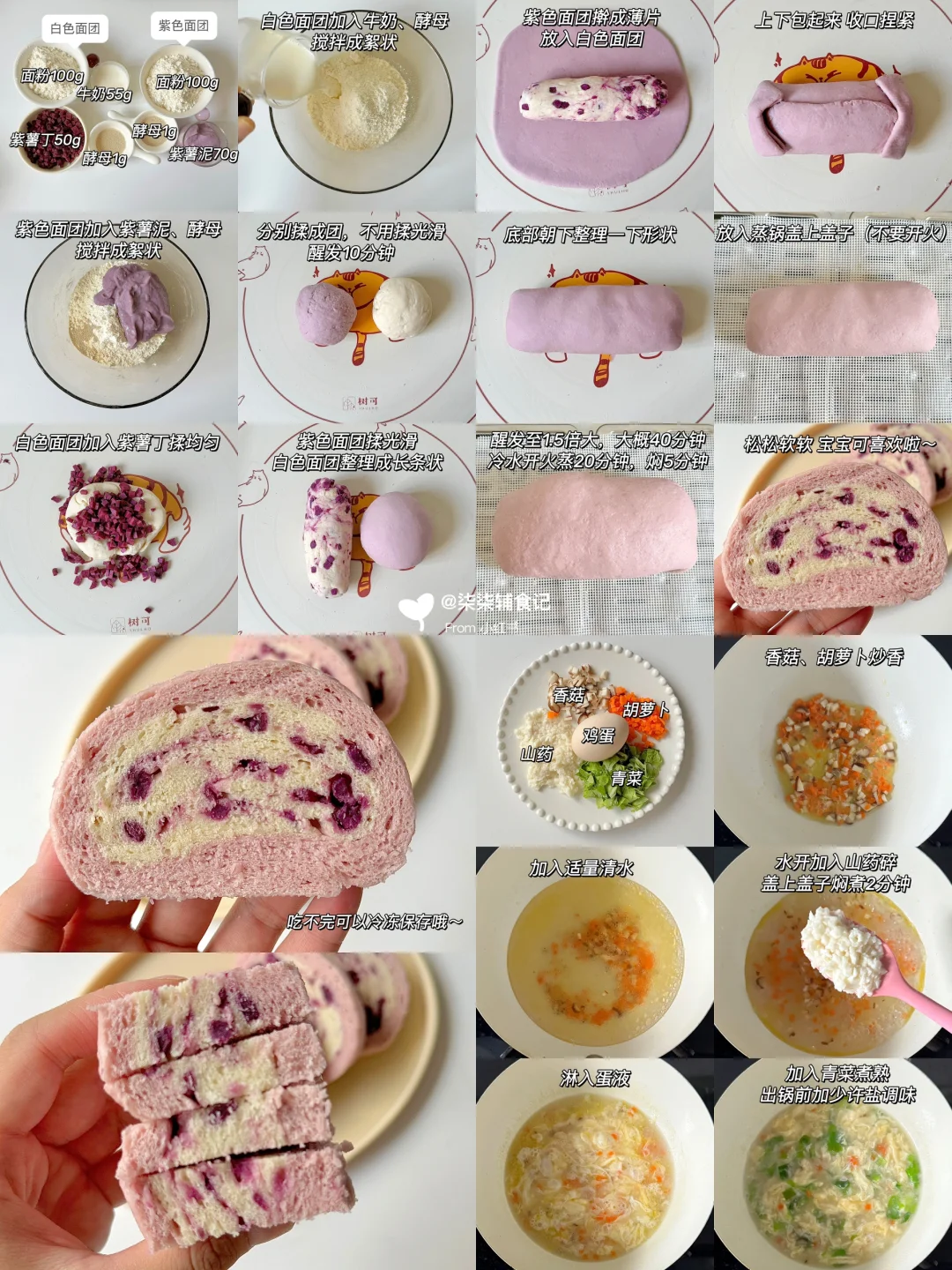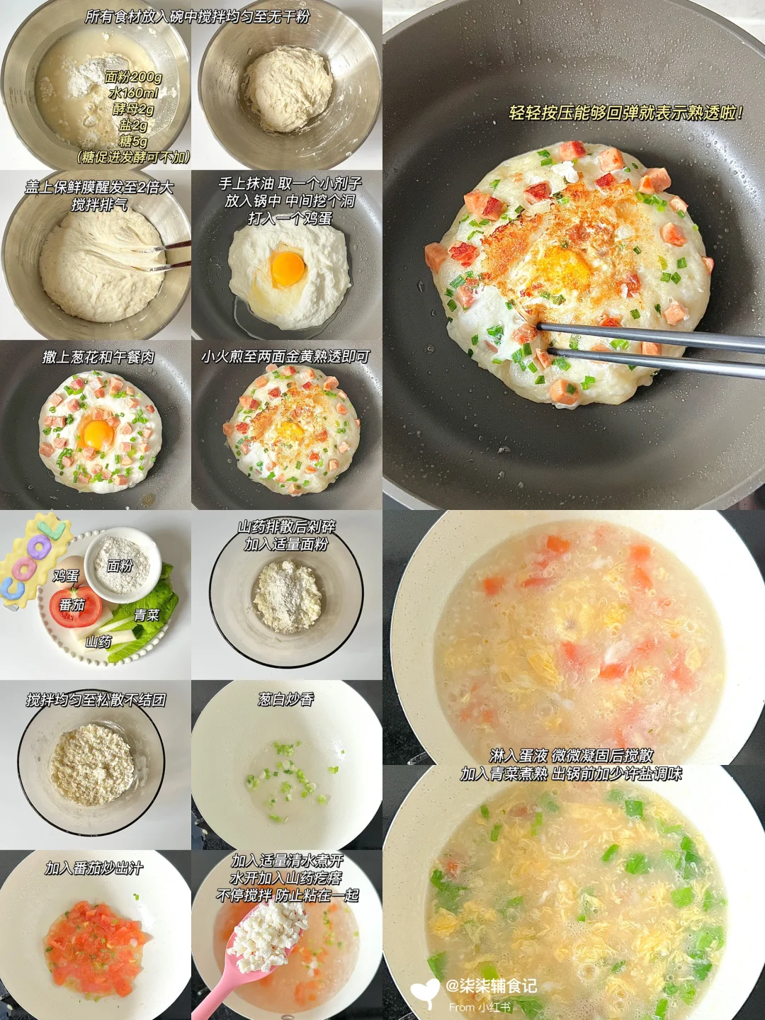 发面食物真的很养脾胃~ 脾胃养好了,体重身高蹭蹭涨[派对R][派对R] 💡所有发面食物都可以提前一个晚上放冰箱冷藏发酵一夜,第二天早上回温一下就可以轻松搞定啦~ 吃不完都可以放冰箱冷冻,吃的时候复热一下就行[萌萌哒R] 🥣番茄豆腐鸡蛋汤➕肉末蔬菜小花卷 🥣养脾胃面汤➕山药红枣馒头 🥣养胃山药疙瘩汤➕葱香鸡蛋发面饼 🥣养脾胃面汤➕香葱鸡蛋发面饼 🥣山药芙蓉汤➕紫薯吐司馒头 🥣红薯山药小米粥➕葱香虾仁发面饼 🥣菠菜虾皮粥➕蓝莓厚松饼 🥣鲜蔬山药芙蓉汤➕奶香小馒头 🥣三鲜菌菇汤➕山药发面蔬菜卷