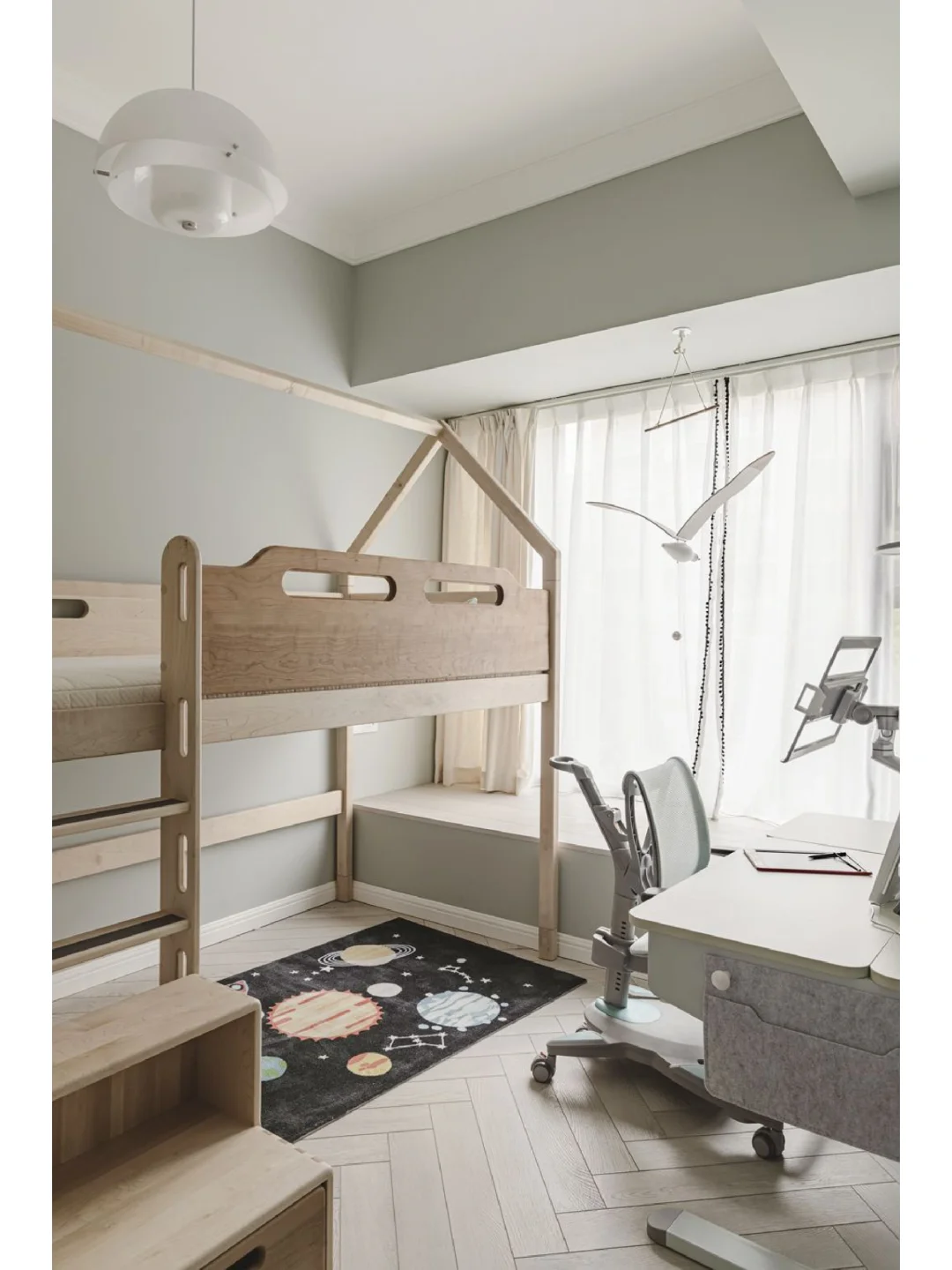 ♟儿童房巧妙利用设计,不仅能提供舒适的休息、学习空间,还余出了日常活动的娱乐区,功能性拉满。
