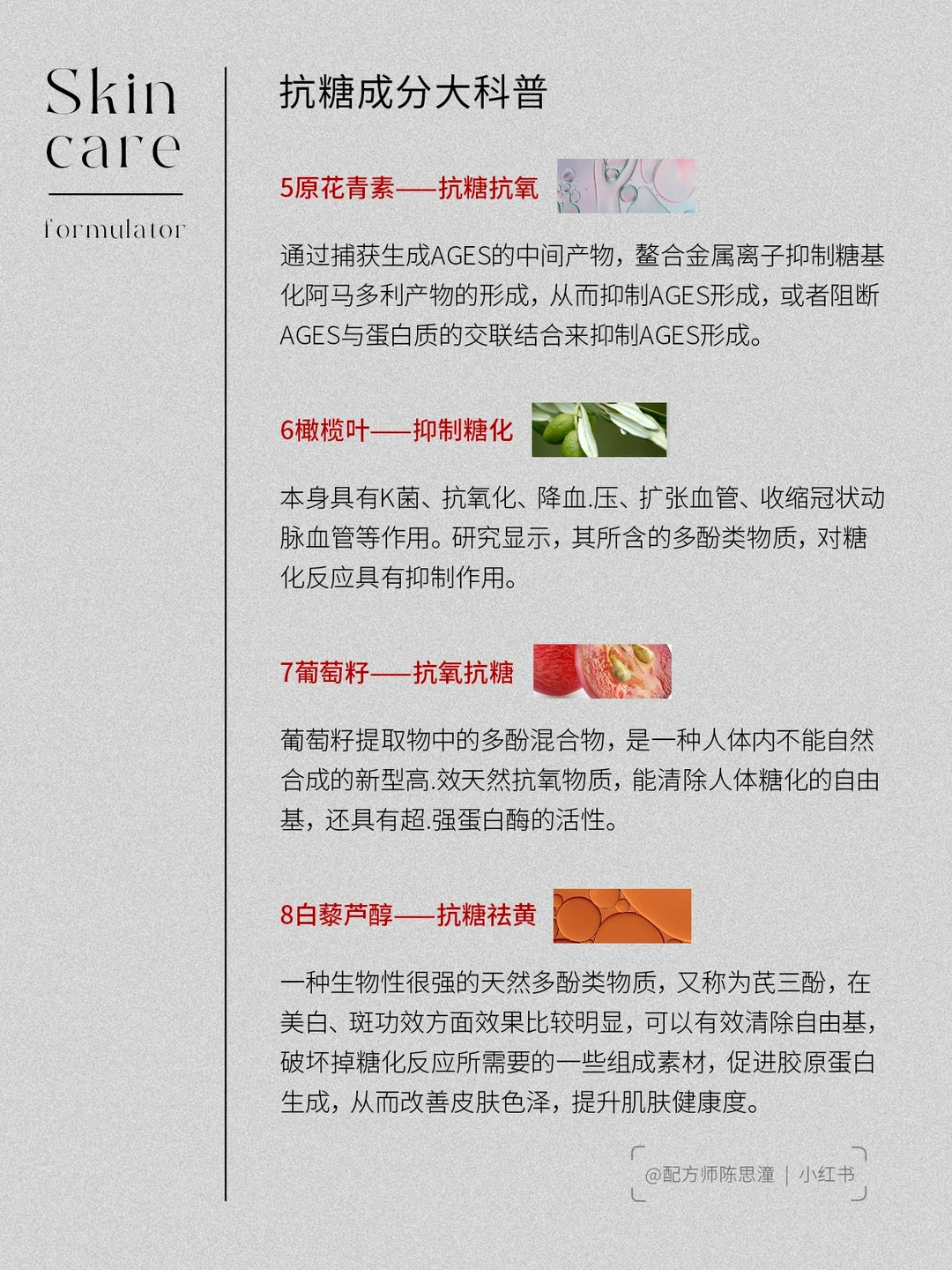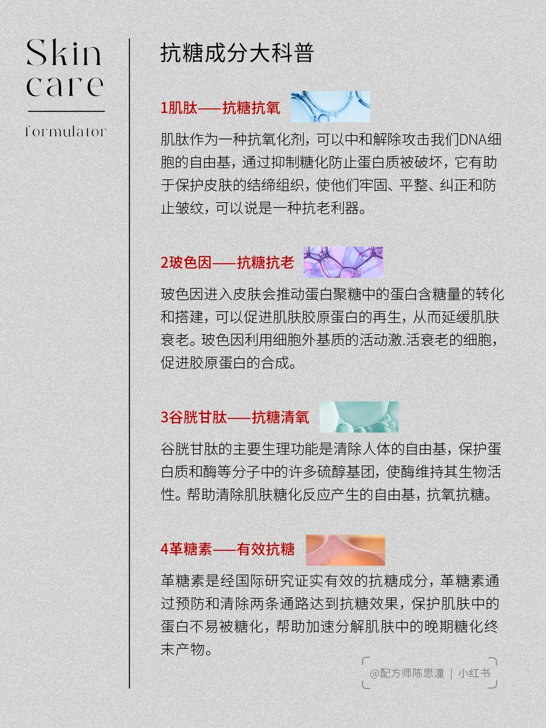 • 抗糖成分大科普 • 配方师教你全.面抗糖抗氧 一起来了解一下吧,下期还想看什么可以❤➕🍎告诉我哦