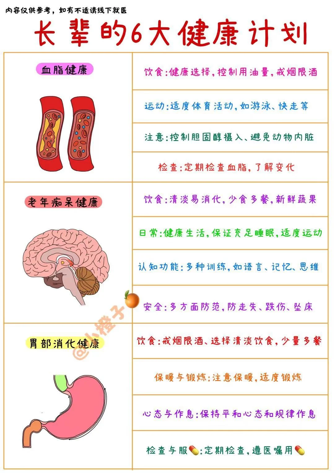 2025年长辈的健康计划,守住以下⬇️6大健康计划