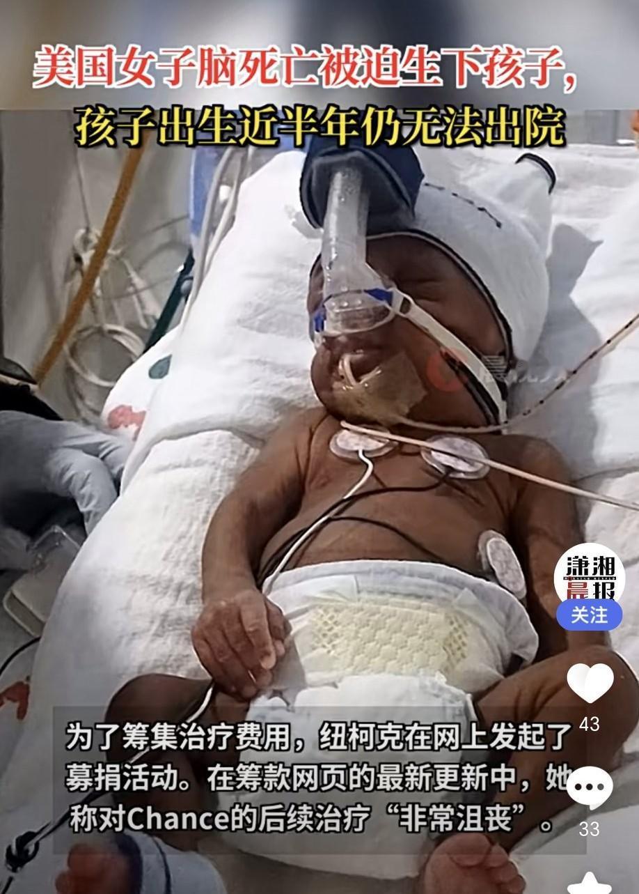 女子脑死亡还被迫生下孩子 美国佐治亚州31岁护士阿德里亚娜·史密斯,今年2月脑死亡时已怀孕8周。就因为当地法律规定怀孕6周后禁止堕胎,她只能靠生命维持系统撑着。4个月后,孩子早产出生时才约0.8千克,一出生就进了重症监护室。如今孩子出生近6个月还重病无法出院,后续治疗费用也让人发愁。 有网友留言:“我出生前,我的妈妈就去世了”谁能想到这样狗血的剧情,居然是真的这种行为就是把这名死去的女性当做「活体孵化器」,严重违背医学伦理。最恐怖的是每天住院维持生命体征的钱很贵,家属自费,看着自己的亲人遭受这种折磨,自己还要为之付天价费用。 他们想要孩子,但决定权不该被州政府剥夺。这哪是尊重生命,简直是把人当生育机器,希望孩子能早日康复,也希望这样的悲剧别再发生。