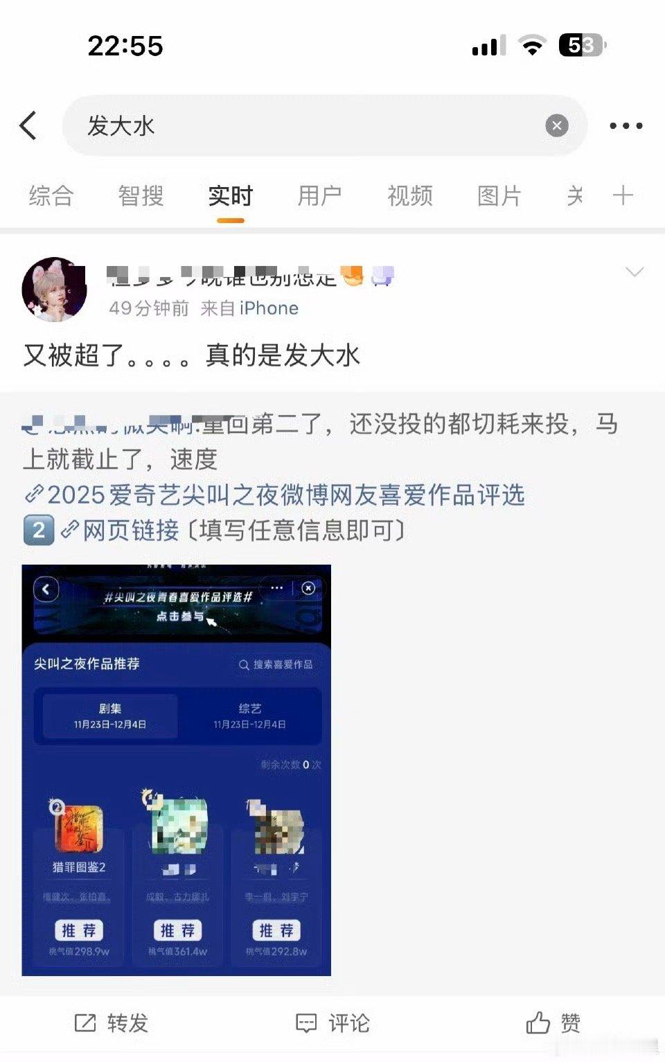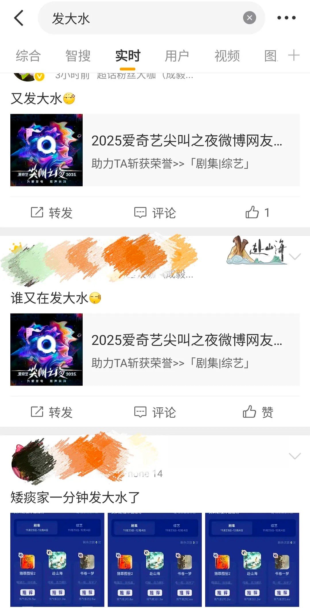 发大水广场好热闹,成毅刘宇宁檀健次三家正在混战,都在说对方🥝的尖叫之夜投票注氵,三家都是流量演员,这种抢票真的很难分胜负,还有十几分钟截止,所以到底谁家发大氵了?2025尖叫之夜网友喜爱作品评选