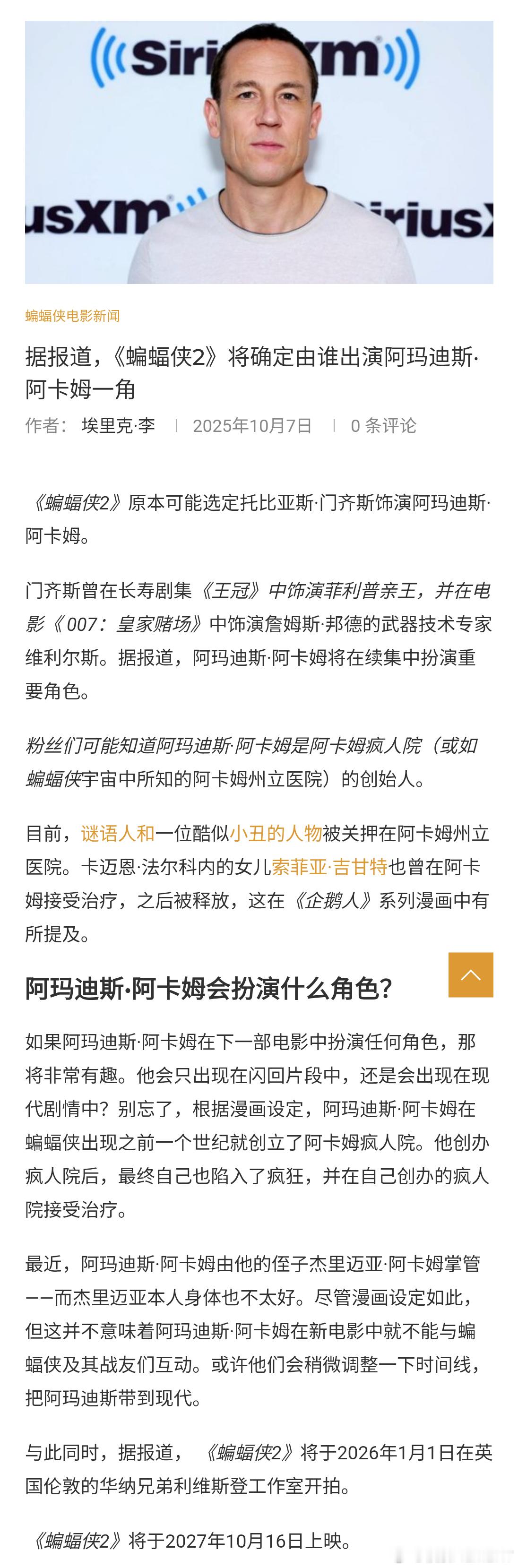 阿卡姆医生有可能是《蝙蝠侠 2》的反派之一之前也曾有相关选角传闻