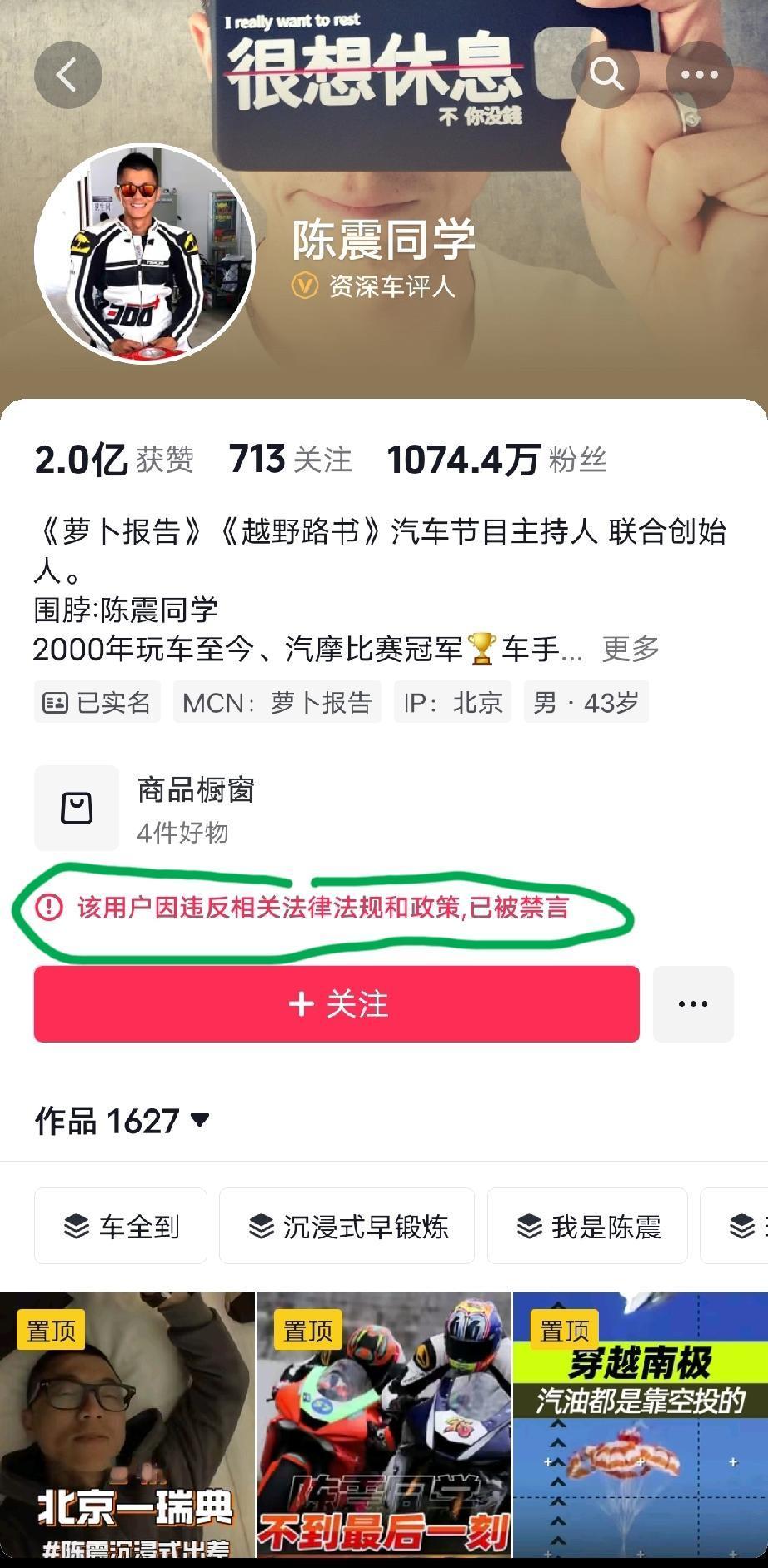 就在刚刚,说车大V“陈震同学”也被全网禁言了,而至于为什么会被禁言,网友纷纷猜测