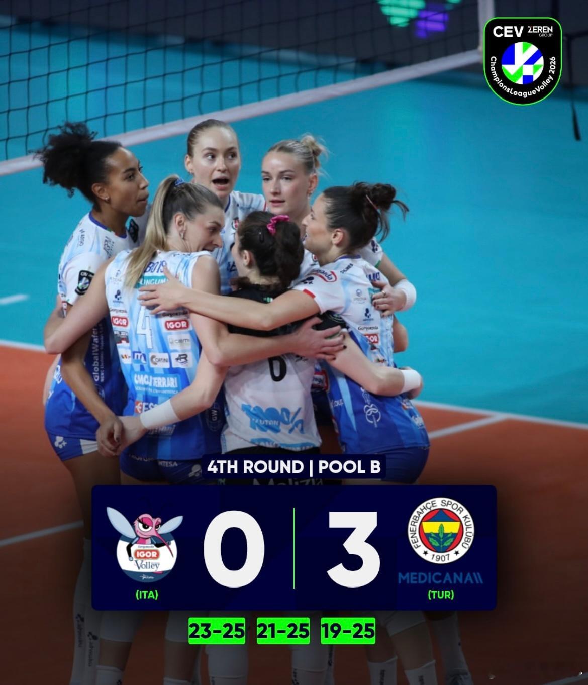 【诺瓦拉完败费内巴切,瓦尔加斯MVP20分】女排欧冠 第二轮正赛,诺瓦拉主场迎战