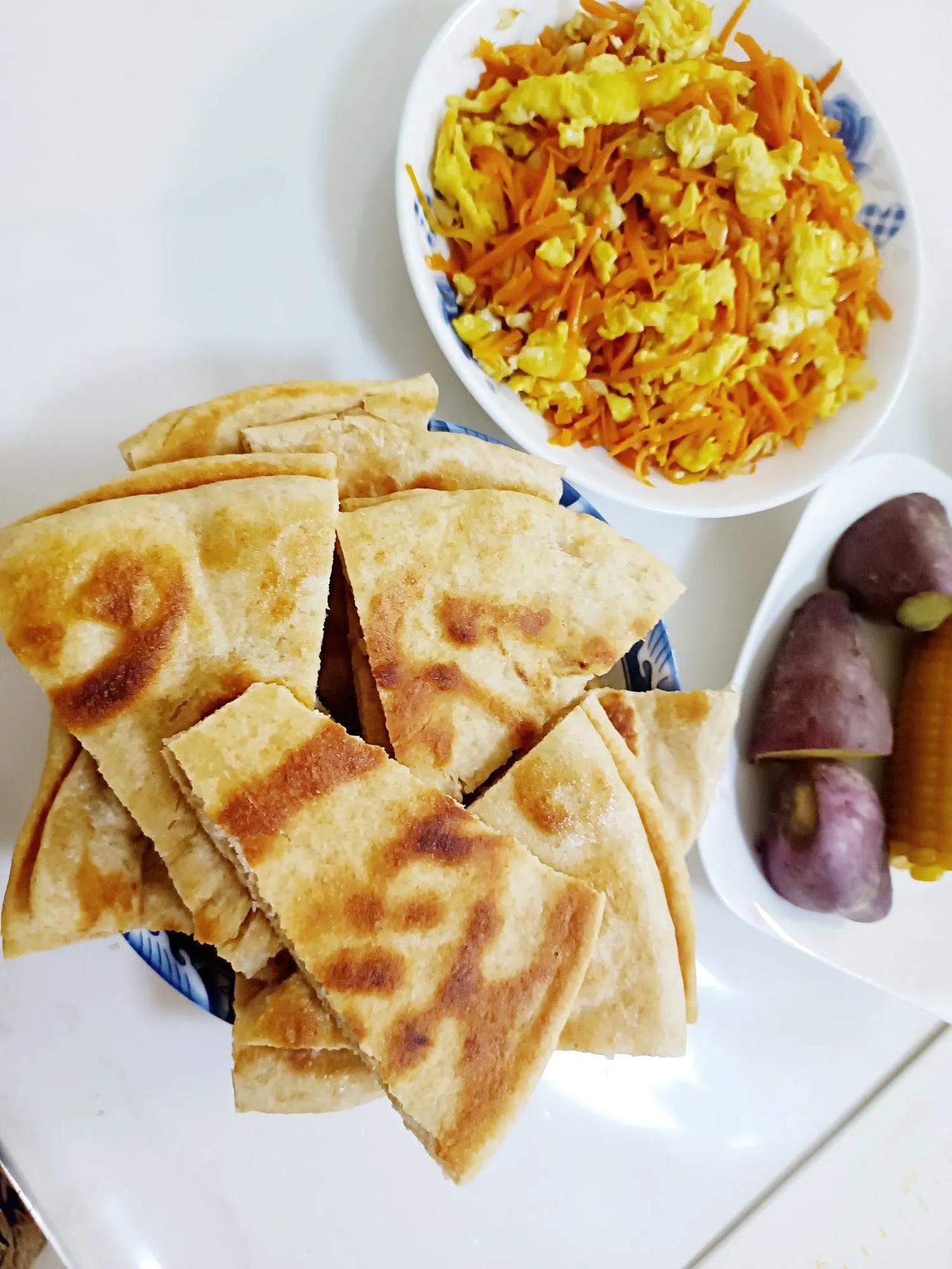 今天周五,孙子一家三口要回来,我也要往他们那边赶。儿子递来两罐东西,是他网购的藕粉和“黑八珍”,笑着说:“妈,你拿两罐回去!”这孩子一直心细,每次买到合口味的吃食,总惦记着让弟弟家也尝尝,倒真应了“长兄如父”的情分。 想起他当年谈对象时说的话,“娶妻当娶贤,我要的是能好好过日子的大嫂,不是中看不中用的花瓶”,如今看来,他真是找对人了。 看看今天的早餐:稠滑的藕粉、全麦发面油酥饼,红薯和玉米,再配上盘胡萝卜炒鸡蛋(烙了四张饼,剩下的冻冰箱,给他们备点干粮)。 这藕粉和全麦面,倒让我想起小时候。那时候哪有藕粉,饿了就用红薯淀粉熬成糊糊喝,吃的也是玉米面窝头,偶尔能尝到点藕粉和全麦面,却觉得格外香。后来日子好了,有了小米粥、白面,藕粉、全麦面反倒被抛在了脑后,觉得没那么好吃了。 没成想,如今的孩子们讲究起科学膳食,反倒把这些老味道又捡了回来,红薯、玉米、藕粉、玉米面、全麦面成了餐桌上的香饽饽,倒像是一种温柔的时光轮回。