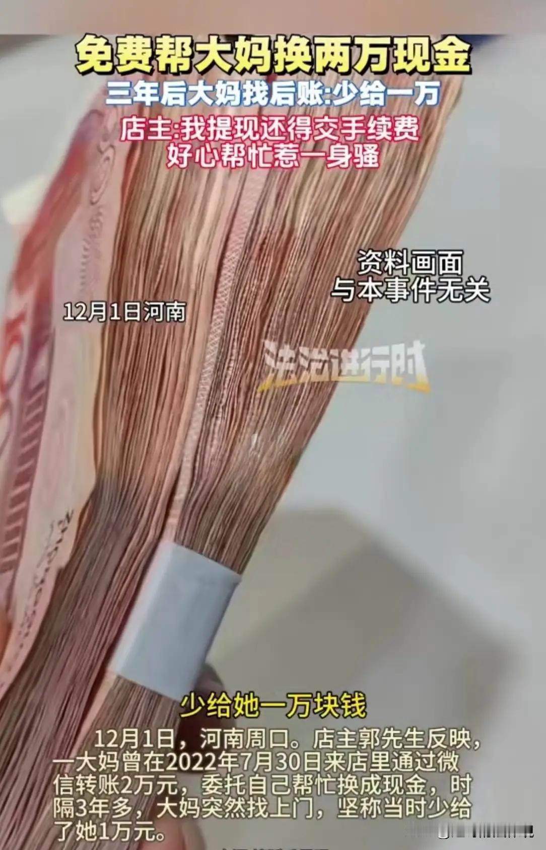 大爱无疆,健康人生的真谛——一段民间故事的启示 在河南周口的平凡小城,有一段令人感慨万千的故事,犹如一幅泼墨山水,既有波澜壮阔的气势,也蕴含着深刻的生活哲理。故事的主角是一位善良的大妈和一位热心的男子,他们的相遇,仿佛是一场关于“善行积德,健康人生”的生动写照。 三年前的一天,大妈满怀焦急,来到男子的小店,请求帮忙换取2万元现金。男子见她焦急的模样,心生怜悯,便一口答应。大妈微信转账,男子帮忙换钱,善意的举动如春风化雨,润物无声。谁知,岁月如梭,转眼三年过去,大妈竟然带着一股“铁了心”的执念,找到男子,声称当年少给了1万元,要求补偿。 此事犹如一盆冷水泼在善良男子的心头。转账记录还在,监控视频也无法留存,面对大妈的“执迷不悟”,男子只得无奈叹息:自己白搭手续费,好心帮忙却被讹。这一幕,令人扼腕叹息,也让我们深思:真正的健康,不仅是身体的强健,更是心灵的坦荡与善意的传递。 人生如行走在大江大河之上,风浪难免,但只要心怀感恩,善待他人,便能“内外双调”,身心皆康。健康的真谛,正如中医所强调的“阴阳调和”,既要关注身体的养护,更要修炼一颗感恩的心。只有心怀感恩,才能抵御人生的风风雨雨,迎来阳光明媚的日子。 故事虽短,但寓意深远。它告诉我们:做好人不易,但善行是人生最美的风景。我们应以“滴水穿石”的恒心,积累善意,传递正能量。让我们在日常生活中,既关注身体的健康,也不忘心灵的修养。因为,真正的健康,是内外双调,是心怀感恩的生活态度。 让我们携手共进,用一颗感恩的心,去迎接每一个晨曦,用善良的行动,点亮身边的每一寸土地。如此,人生才会如同那江河奔流,磅礴壮阔,充满希望与力量。 健康人生,从感恩开始;善行天下,从我做起!