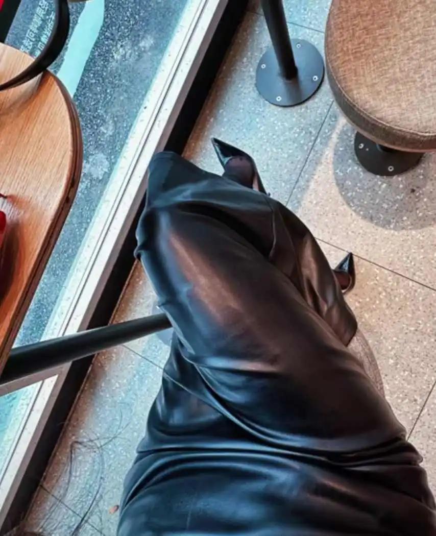 包臀裙勾勒身材曲线,丝袜增添神秘,高跟提升气质!包臀裙+黑丝+高跟,三件套绝配[