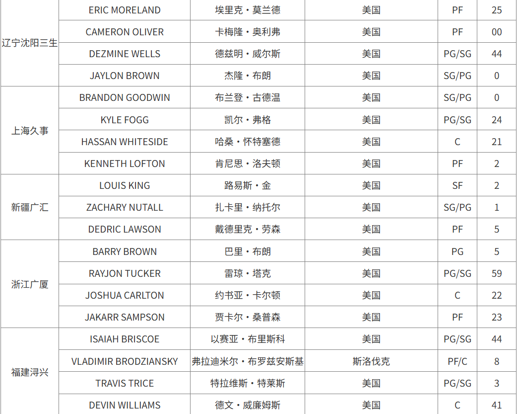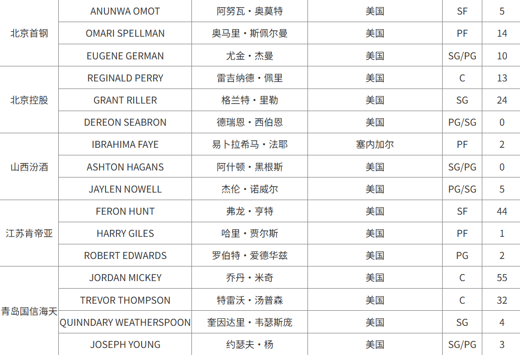 在其他注册信息中,除四川男篮外,其余球队均已注册外援。