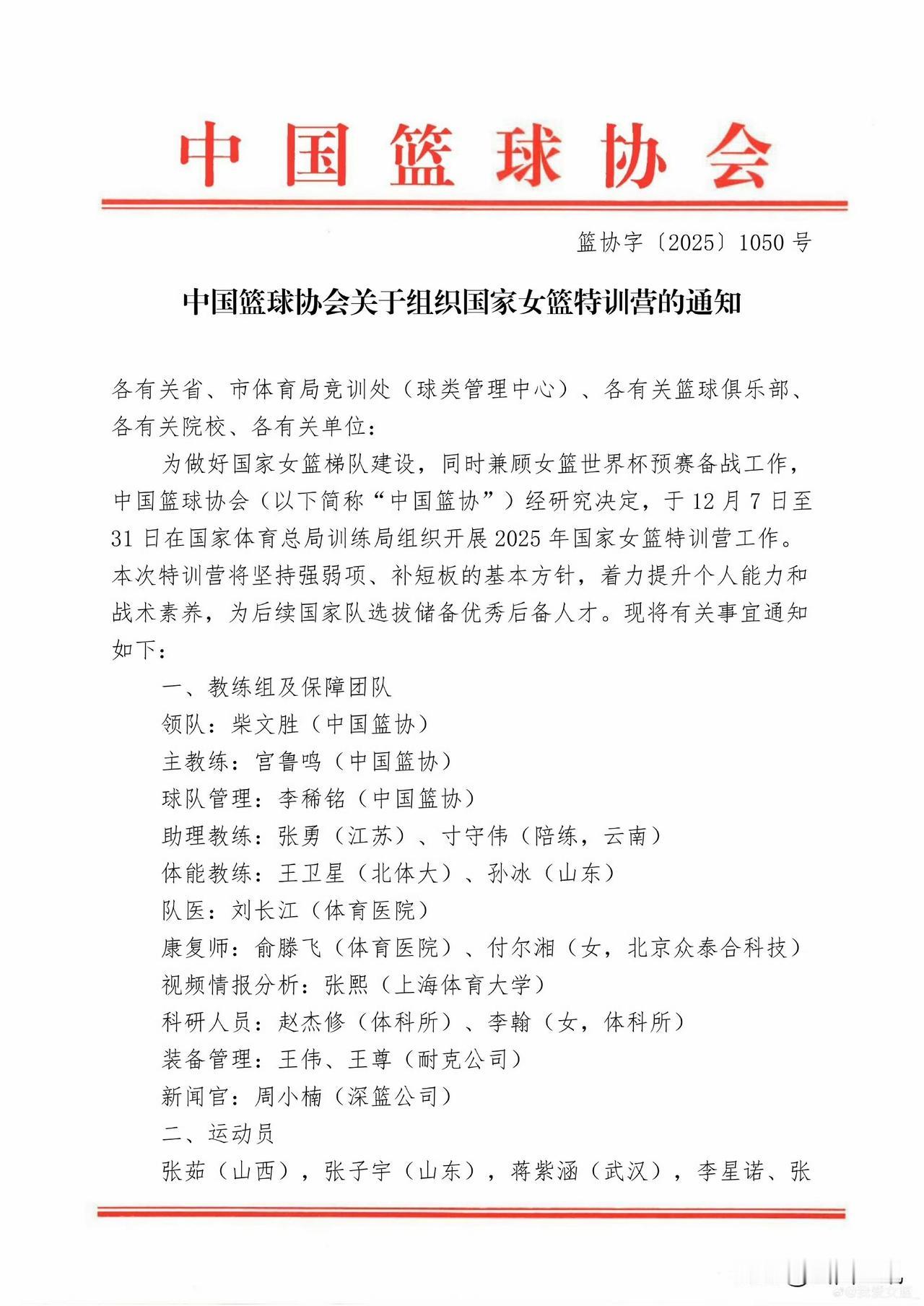 【张茹最新动态:进入国家女篮特训营】 WCBA联赛2025-2026赛季的常规赛开打了,新加盟山西竹叶青酒女篮的现役国家队球员张茹没有进入12人大名单。有球迷多次问询:张茹怎么不打球?本博在张茹参加了全运会做旗手后早就披露:张茹不会参加山西女篮新赛季前半段的赛事。原因是张茹腿部有伤,在出席山西竹叶青酒女篮新赛季新闻发布会时,张茹手术后刚刚一个多月,依然需要通过康复锻炼来恢复。大概率会在联赛后半段才能复出,这就是张茹不能代表山西女篮出战新赛季的根本原因。当然,即使伤了,张茹依然是张茹。在近日国家篮篮协下发组织国家女篮特训营的通知中,共九位女球员,除了张茹之外,其余8位均为20岁左右的年轻球员,她们将在本月7日至31日进行特训。张茹作为较特训球员年龄大点的老球员,想必她在特训营中的作用一定是技战术方面的传帮带。希望张茹在特训营以练代养,以养代训,以训代赛,早日康复归队!