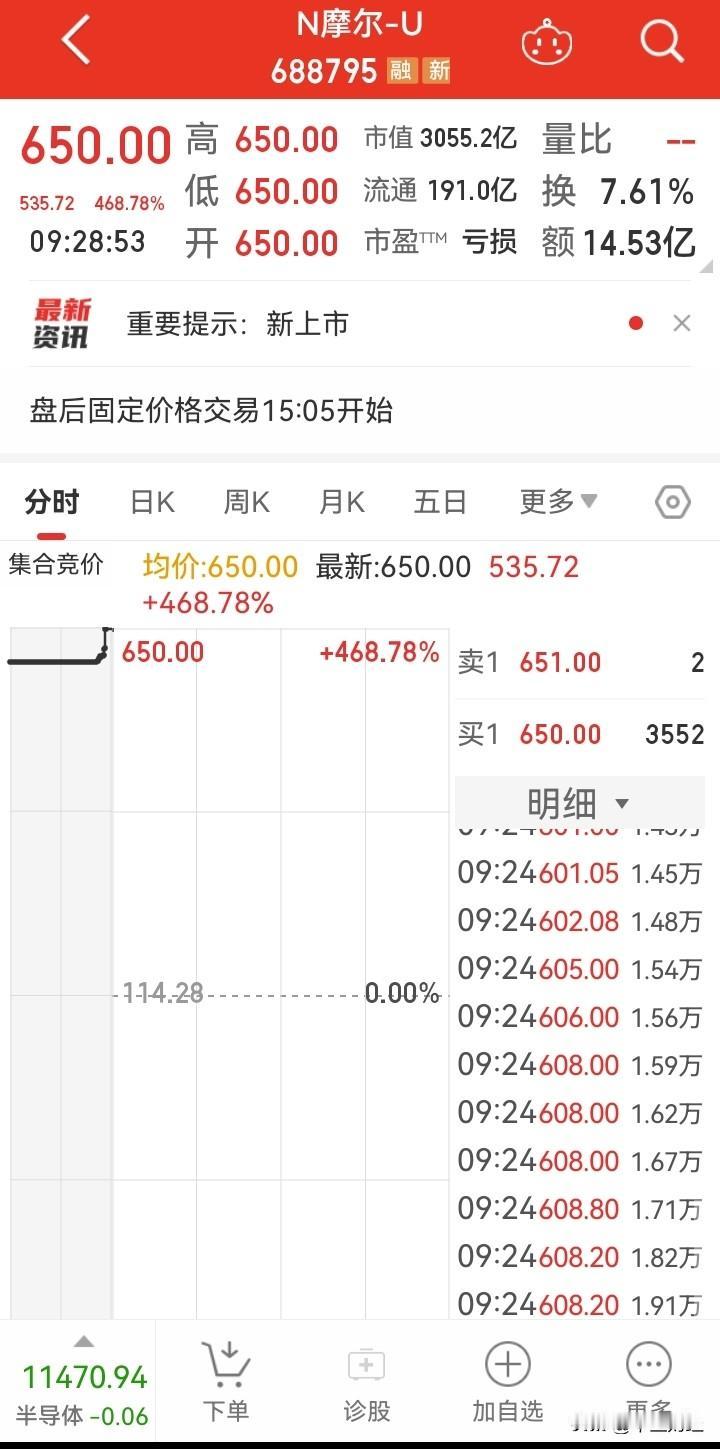 【A股今天】估计刘教授怒了! N摩尔上市了,开盘便大幅上涨近500%,然而,这实际上是一家处于亏损状态的企业! 更为关键的是,其上市流通股本仅2800万,总股本却高达4.7亿,这意味着限售股一下子多出了4.3亿!这是何等奇葩的市场?竟造就了这样的亏损股,限售股带来的风险如此沉重! 为何新股不能与其他股票实行相同的涨跌幅限制呢?按规定,涨跌幅应在正负20%,可为何要对新股区别对待、特殊处理呢?这明显有人为操控利益之嫌,规则缺陷尽显! 估计刘教授又要发怒了,成本只有5,6毛的限售股,市场价竟然高达600元,而且还有90%不流通,限售股风险累积巨大!都别碰!