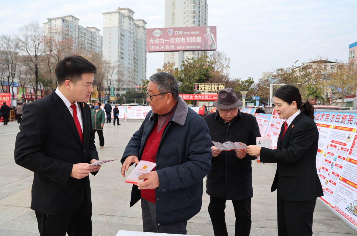12月4日,在第十二个“国家宪法日”到来之际,河南省新野县人民法院组织干警在县文化广场开展宪法宣传活动,将法律知识送到群众身边,让宪法精神融入群众生活。
