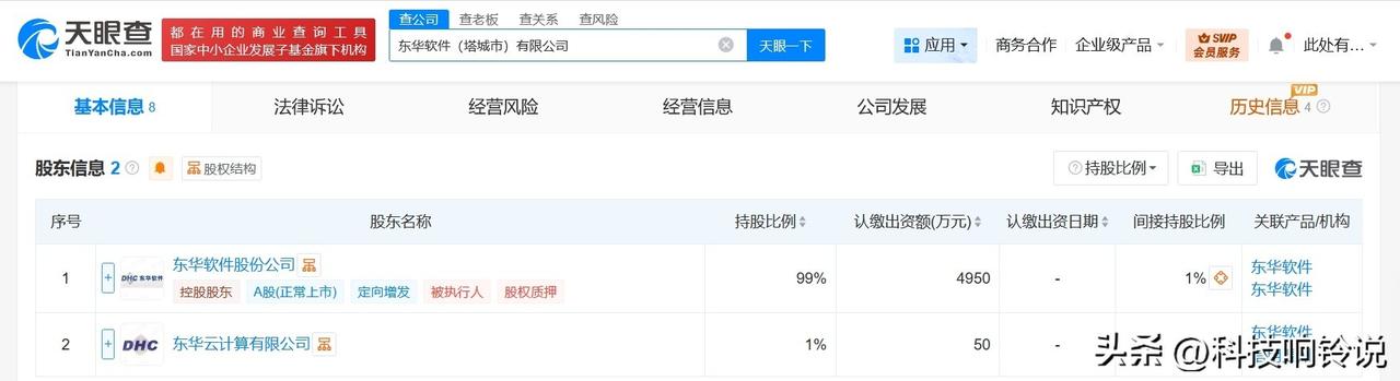 【东华软件在新疆塔城成立新公司 注册资本5000万】 天眼查App显示,近日,东华软件(塔城市)有限公司成立,法定代表人为崔雨露,注册资本5000万人民币,经营范围含网络与信息安全软件开发、计算机软硬件及外围设备制造、计算机软硬件及辅助设备批发、计算机软硬件及辅助设备零售、云计算设备销售、信息安全设备销售、智能控制系统集成、智能农业管理、大数据服务、数据处理服务等。股东信息显示,该公司由东华软件(002065)及旗下东华云计算有限公司共同持股。 天眼查信息: