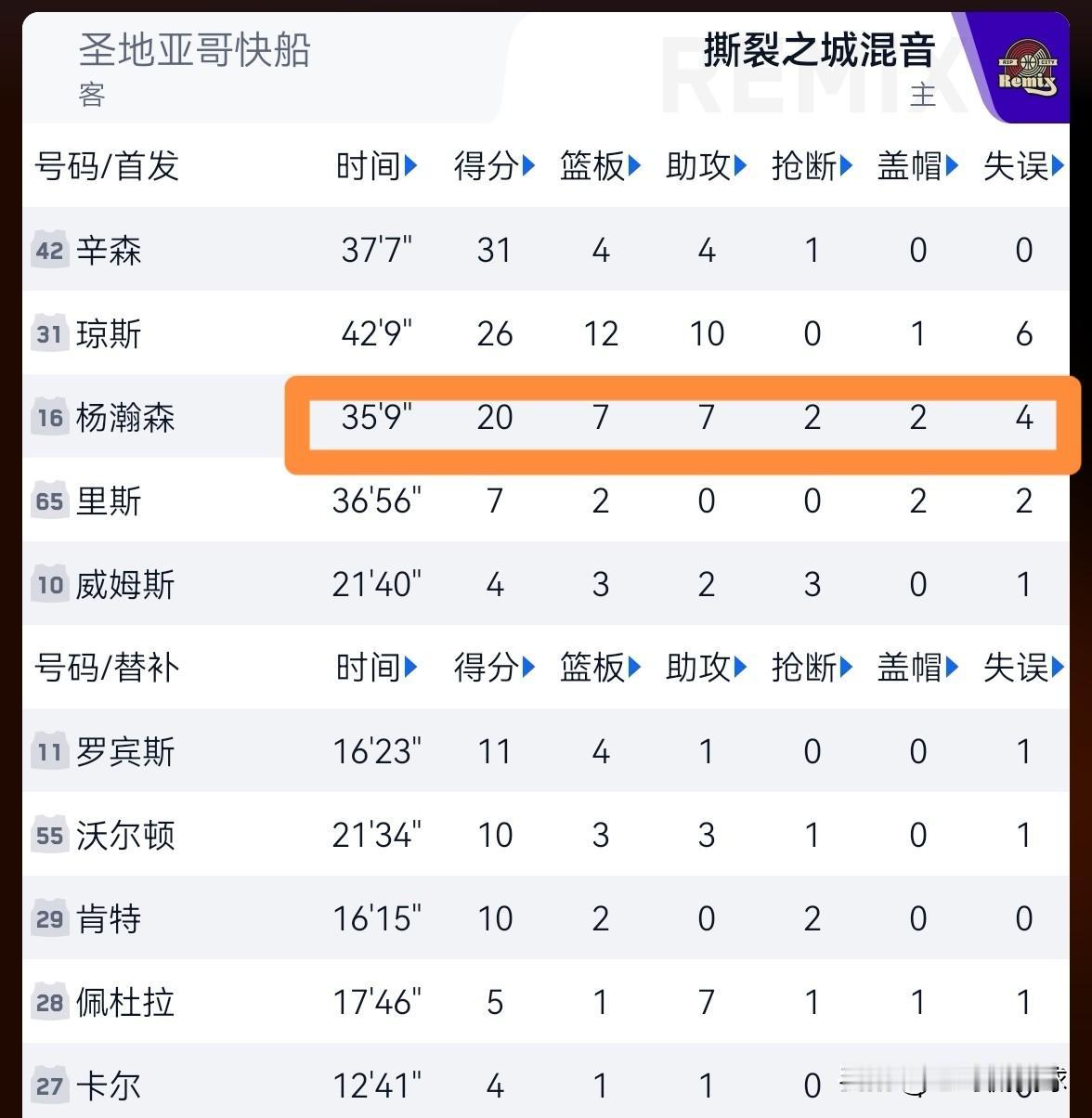 开拓者新秀杨瀚森完全可以统治发展联盟!虽然今天撕裂之城混音在主场以128:135惜败于圣地亚哥快船,但是杨瀚森在攻防两端都打出了统治级的表现。 全场比赛下来,杨瀚森首发出战35分钟,投篮14中7,其中三分球6中2、罚球4中3砍下20分7篮板7助攻2抢断2盖帽。 俗话说宁为鸡头,不为凤尾!如果杨瀚森能够踏踏实实的留在发展联盟打球,我相信杨瀚森一定能够成为发展联盟的超级巨星。