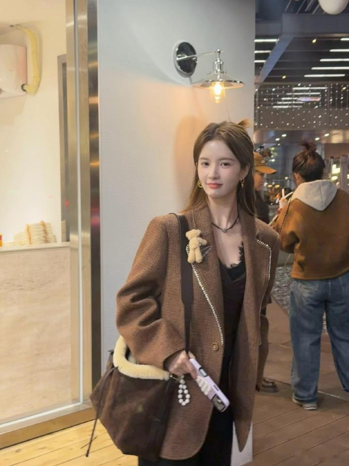 刘些宁美拉德风穿搭刘些宁美拉德风穿搭真的是太好看了呀,棕色系的穿搭,显得整个人好