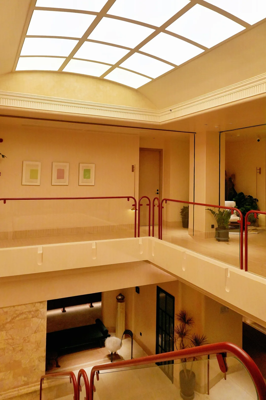 酒店共有 18 间客房,以飞燕为名,围廊式的布局处处藏着设计师的中古巧思。黄铜吊灯垂落而下,洒下温馨的暖光,定制家具上镌刻着独特风情,满满的都是大隐于市的松弛感。
