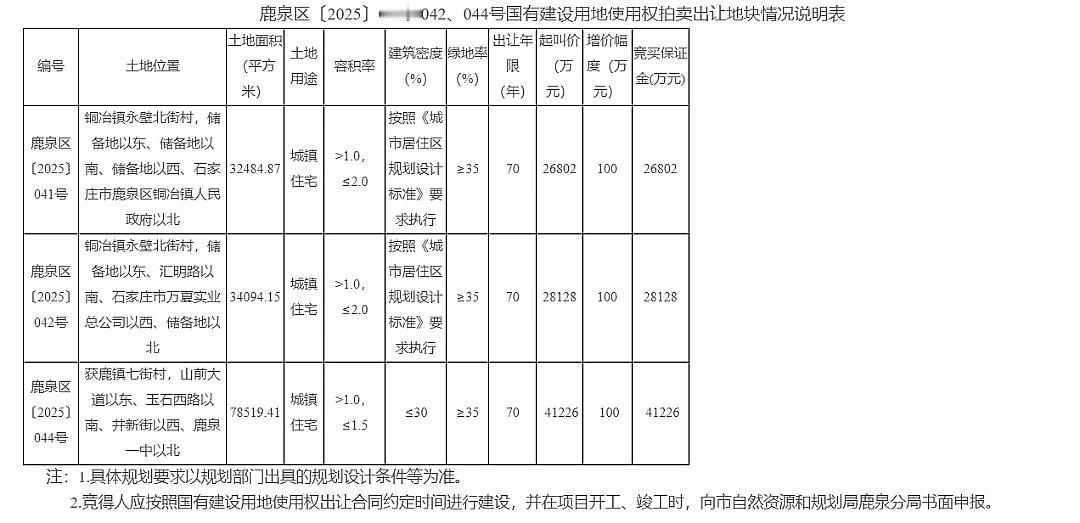 4宗宅地!起拍总价超15亿! 石家庄两区发布土地拍卖出让公告