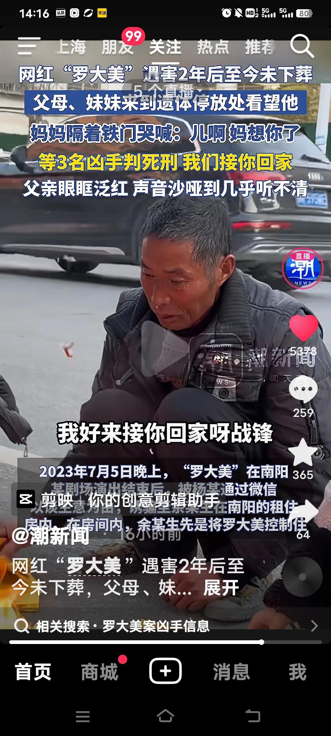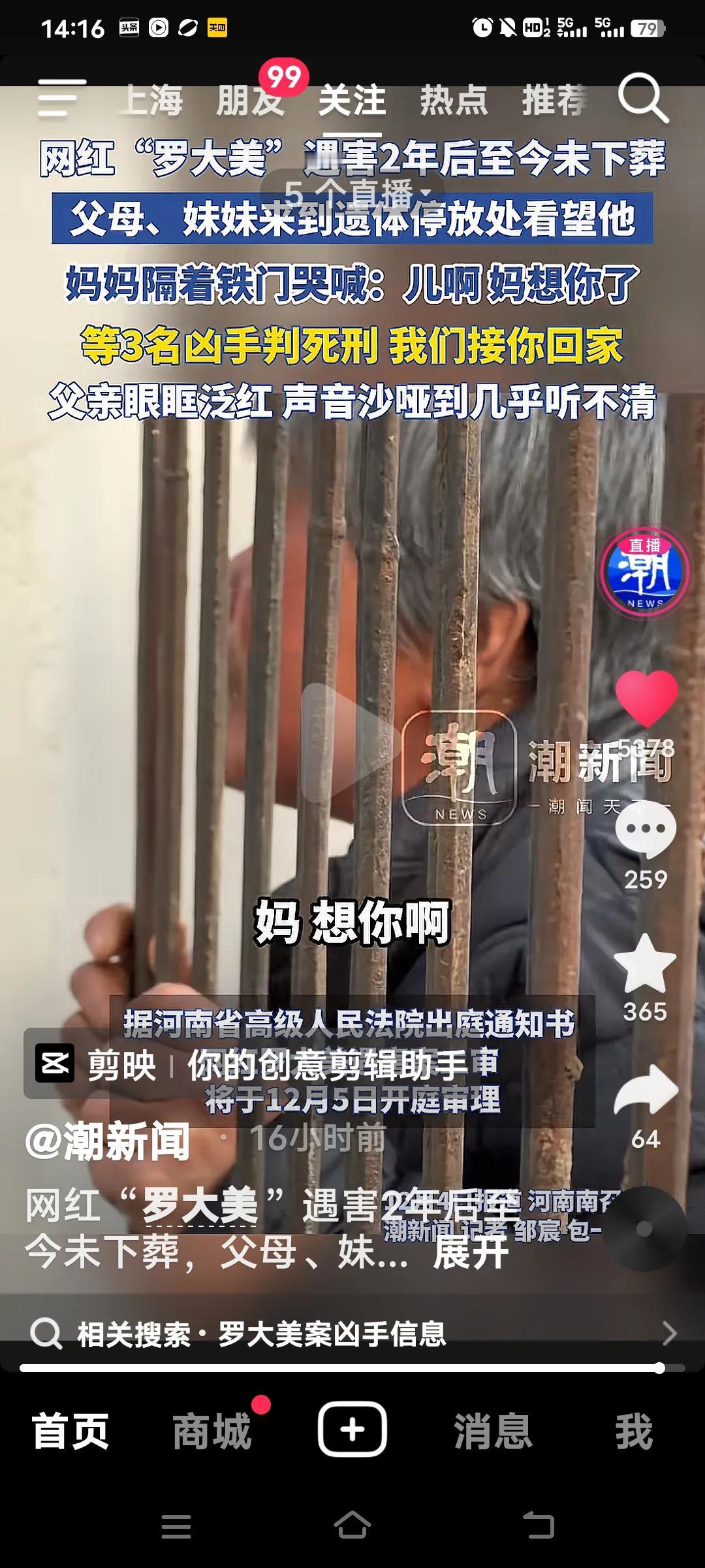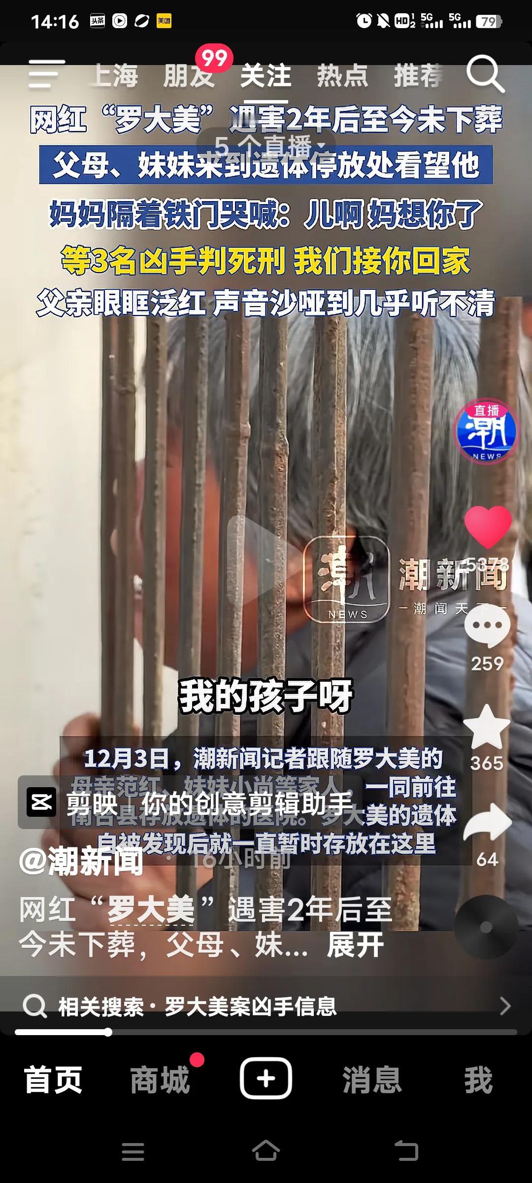 网红罗大美遇害已两年有余,至今仍未下葬,此事着实令人痛心疾首。12月5日,他遇害案的二审即将开庭。他妹妹前往殡仪馆,告知哥哥二审即将开庭的消息。令人气愤的是,凶手竟用罗大美花呗消费2.5万,这笔钱还得家属偿还。 罗大美1993年出生于农村,初中毕业后便开始打拼,后来成为坐拥百万粉丝的反串网红。2023年7月,他遭遇绑架,转账200多万后仍不幸遇害并被埋尸。凶手余金生因赌博缺钱,与沙玉姣、杨恒合谋作案。余金生曾有抢劫前科。罗大美遇害后,家庭支离破碎。 母亲隔了铁门喊儿子妈想你,等严惩几个恶魔后,就带你回家。听了让人心碎呀!父亲愈发沉默寡言,妹妹则扛起家庭重任。司法部门建议保留遗体,期望二审能给家属和大众一个公正的结果。 网友们纷纷直呼,一定要严惩这几个恶魔。若不判死刑,实在天理难容!转走钱也就罢了,为何还要害人性命!正所谓法网恢恢,疏而不漏,他们必将付出应有的代价。害人终害己,早知今日,何必当初呢? 罗大美遇难 罗大美 网红大美遇害案 罗大纲