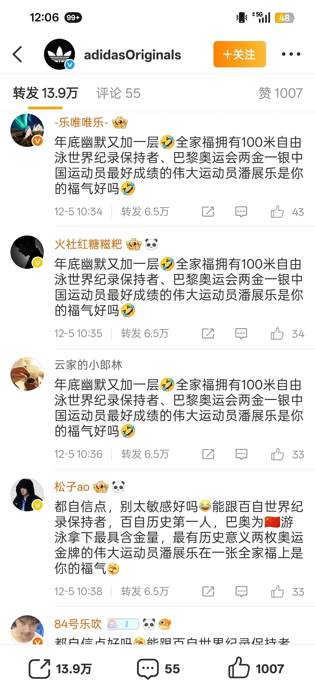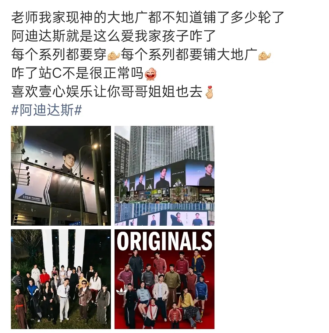 潘展乐粉丝跟李现粉丝因为阿迪全家福的C位在讨论中午