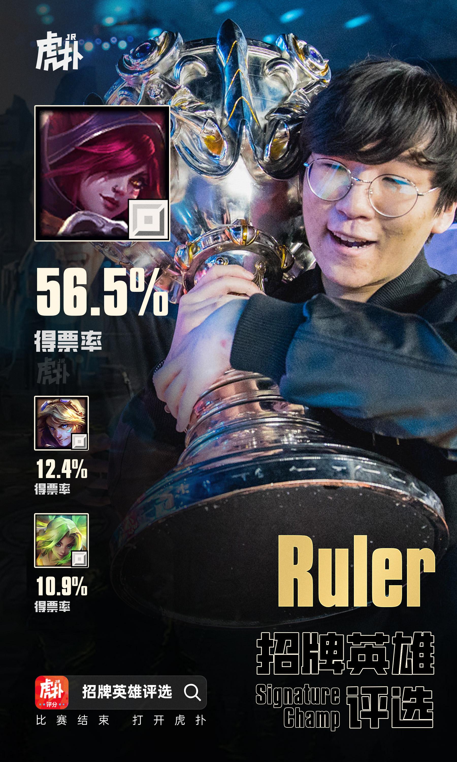 虎扑12月05日讯经过JRs昨日的评选,霞以56.5%得票率当选Ruler招牌英雄。