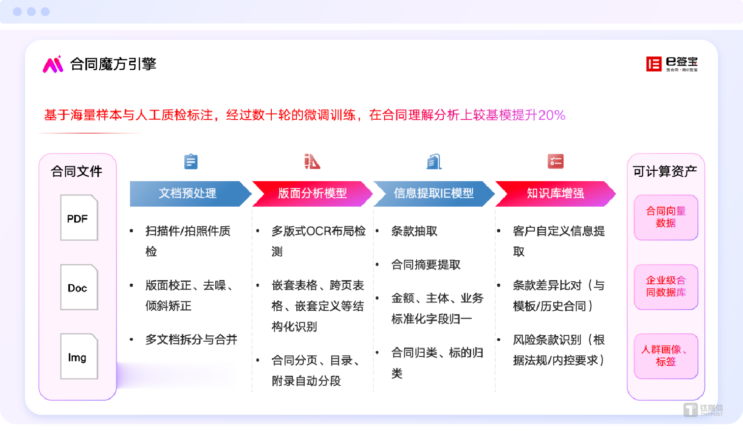 这种结构化执行能力是通用大模型无法提供的核心差异化优势,也是e签宝在合同智能领域建立技术护城河的关键所在。
