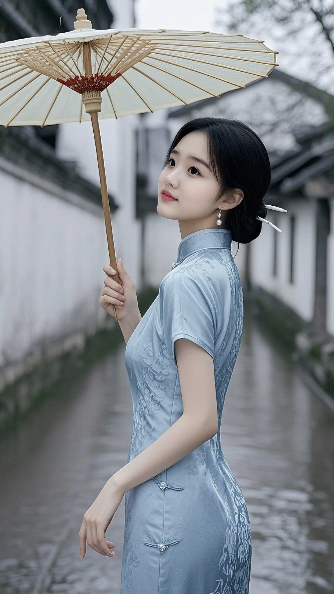 美女小姐姐旗袍,烟雨,古风,不可方物