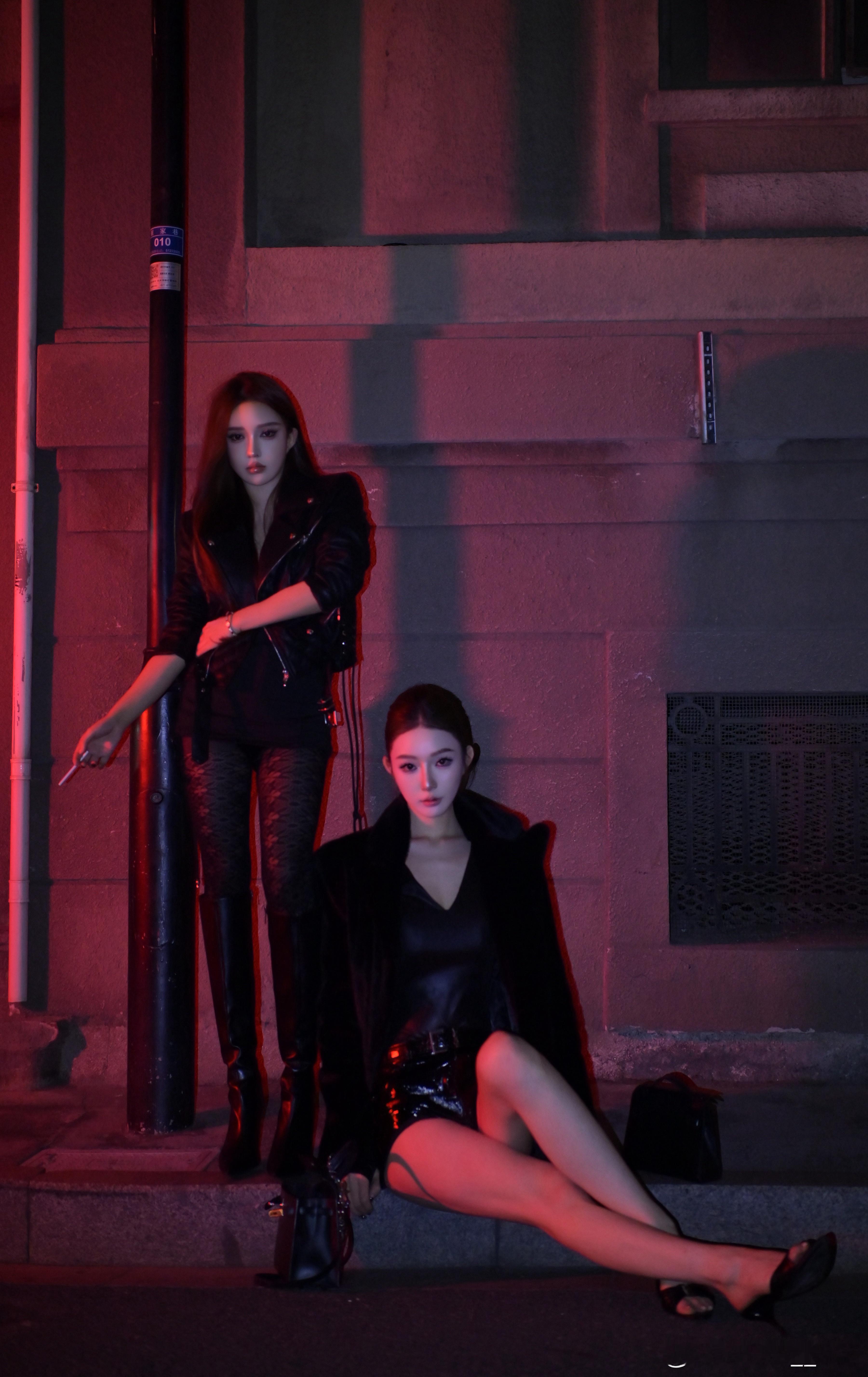 缎面裙裹着柔光,丝巾把彩纹系在颈间,珍珠耳坠轻晃时,笑涡里漫开的甜,恰好揉进了冷