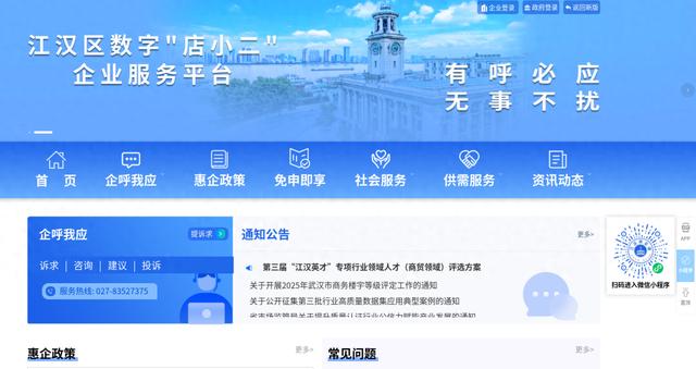 线上平台提质增效。区企业服务中心持续升级江汉区数字“店小二”企业服务平台,实现从“政策文件”到“指尖直达”的流程优化,打造企业服务新体验。归集全区6万余家企业数据,动态更新企业各类信息,形成企业全景画像。创新开发楼宇经济数据模型,覆盖117栋商务楼宇、5000余家企业,为楼宇招商与产业培育提供精准数据支撑。截至目前,平台累计发布惠企政策504条,处理企业诉求654项,满意率达100%。