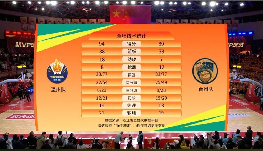 今晚温州vs台州的这场比赛无疑是浙ba开赛以来最精彩的一场比赛,全场94:89的比分也应该是两队总得分最多的一场比赛吧? 特别是两个球队的30号球员:台州队的金子昊和温州队的叶光辉,表现太神勇了。叶光辉是一如既往的牛逼,台州队输就输在叶光辉那最后一记出其不意的三分上。而台州队的30号球员金子昊却是让大家眼前一亮,球队近一半的得分都是他拿到的。据说他还是一位高中生,未来可期啊!!! 今晚台州还有两大主力没有上场,又是在温州的主场,下次两队再次相遇,谁胜谁负还真的不好说!!!