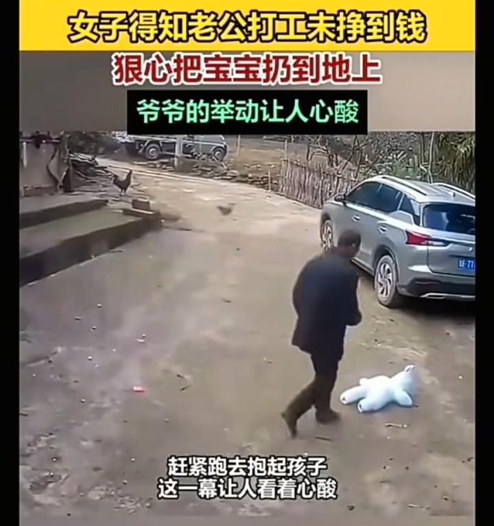 一名女子得知老公没賺到钱狠心将宝宝丢到地上,爷爷知道后和她理论被怼,无奈只能快步