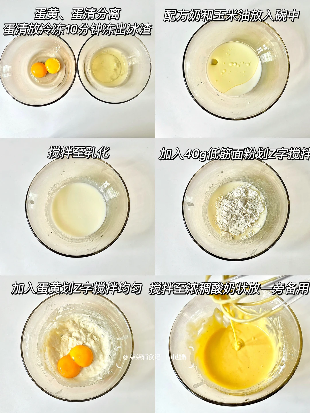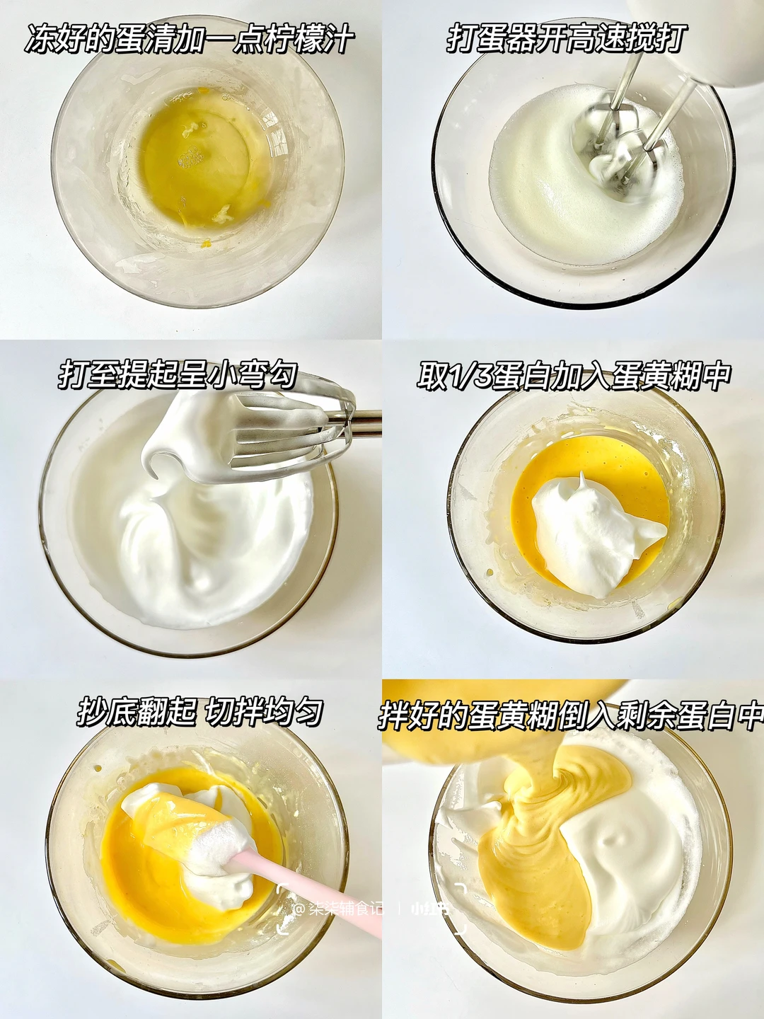 ▫️蛋黄蛋清分离,蛋清可以先放冷冻10分钟,周围有冰渣,打发蛋白会更稳定