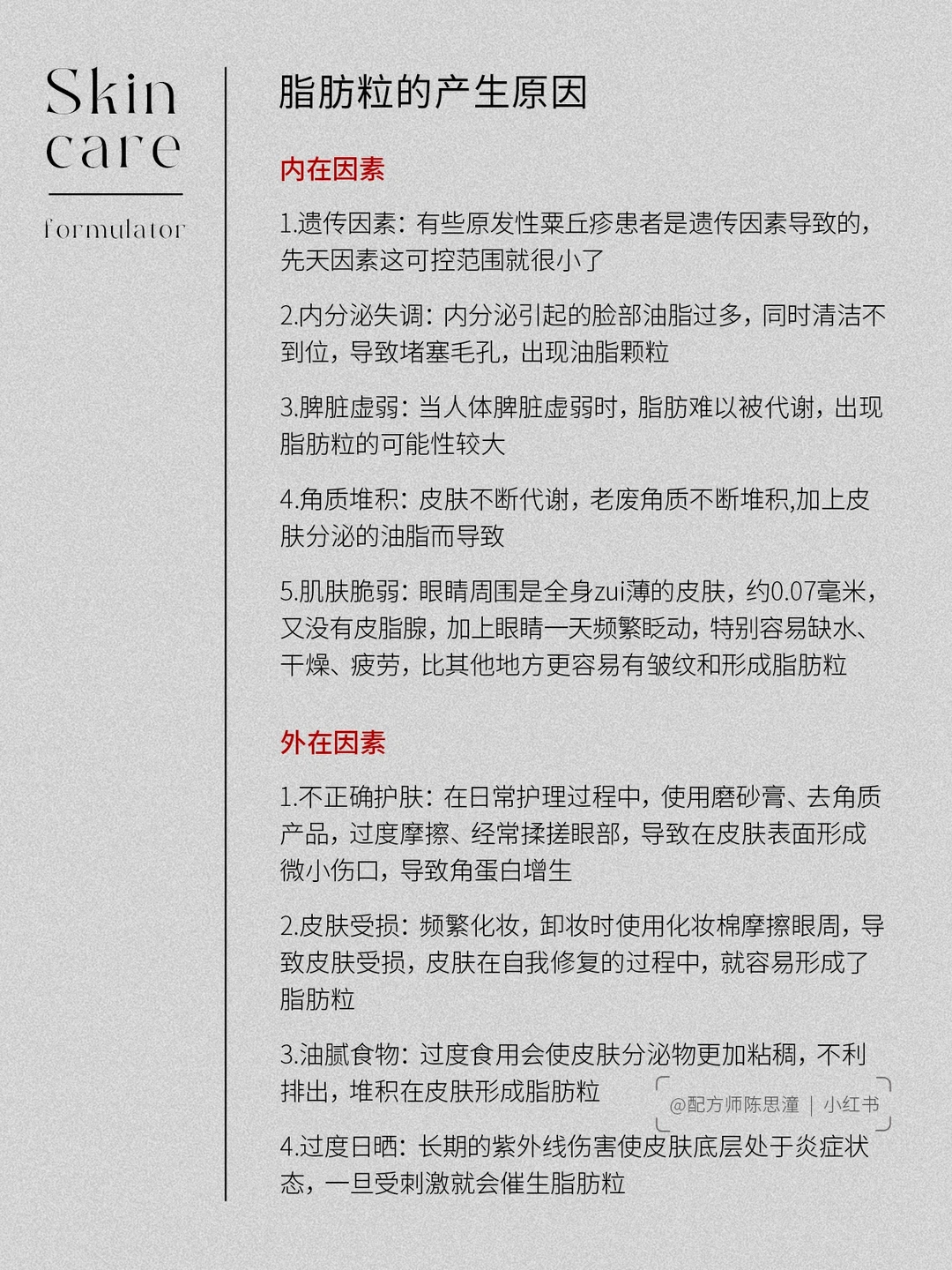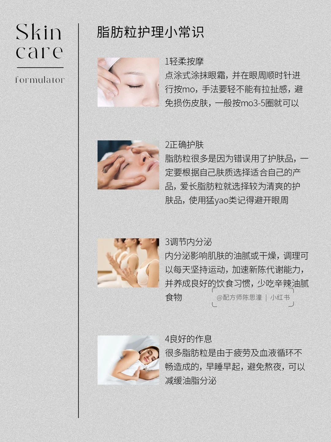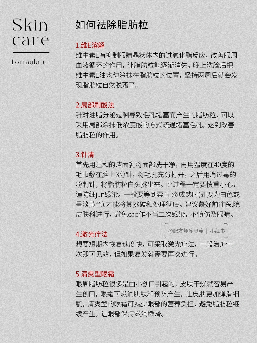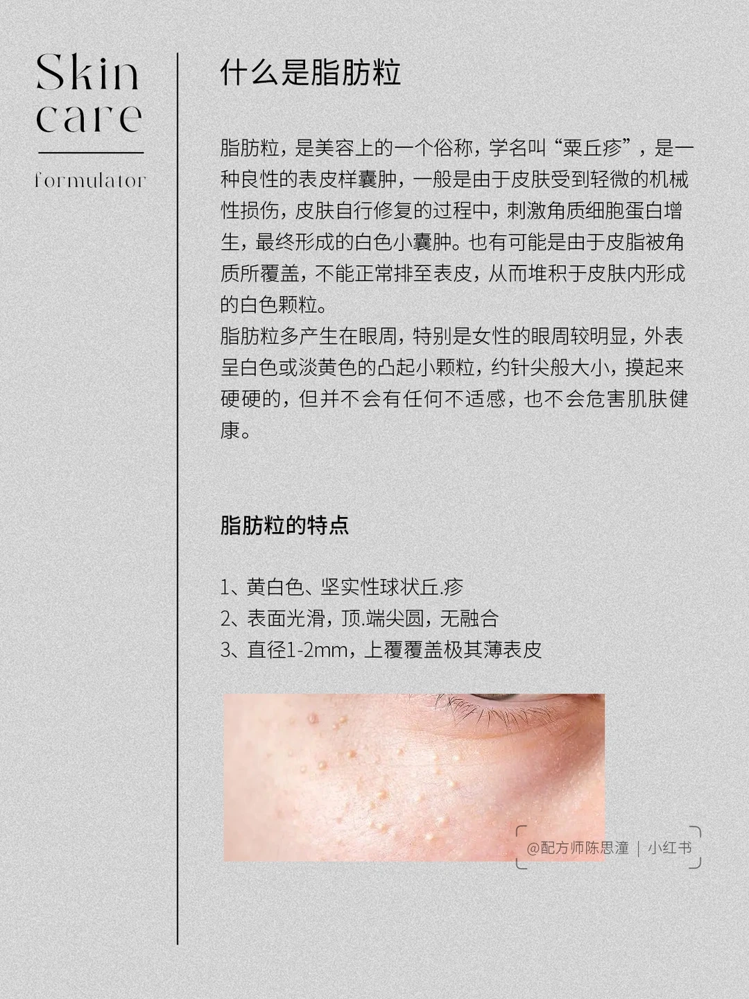• 什么是脂肪粒 • 脂肪粒的特点 • 脂肪粒的产生原因 • 眼霜会引起脂肪粒吗? • 如何祛除脂肪粒 • 脂肪粒护理小常识 • 脂肪粒护肤步骤 一起来了解一下吧,下期还想看什么可以❤➕🍎告诉我哦