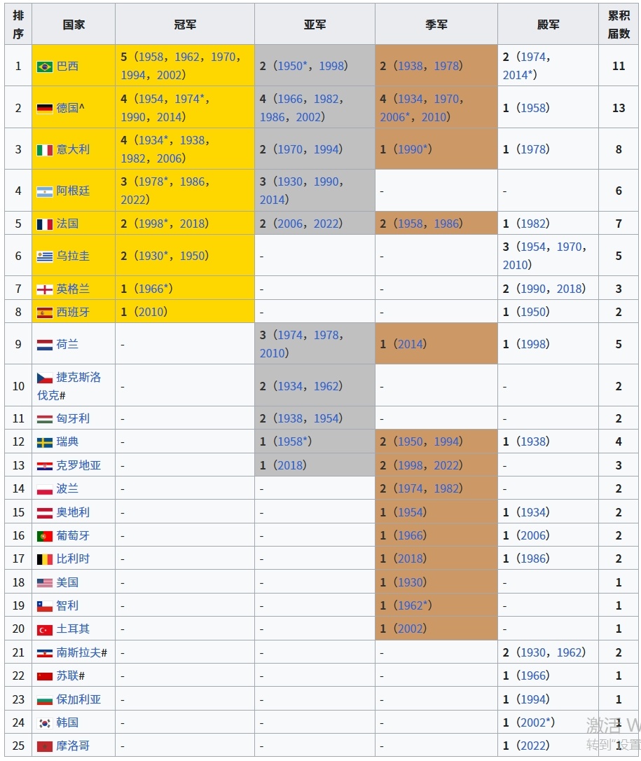 注4:苏联之成绩,国际足联以俄罗斯继承之。