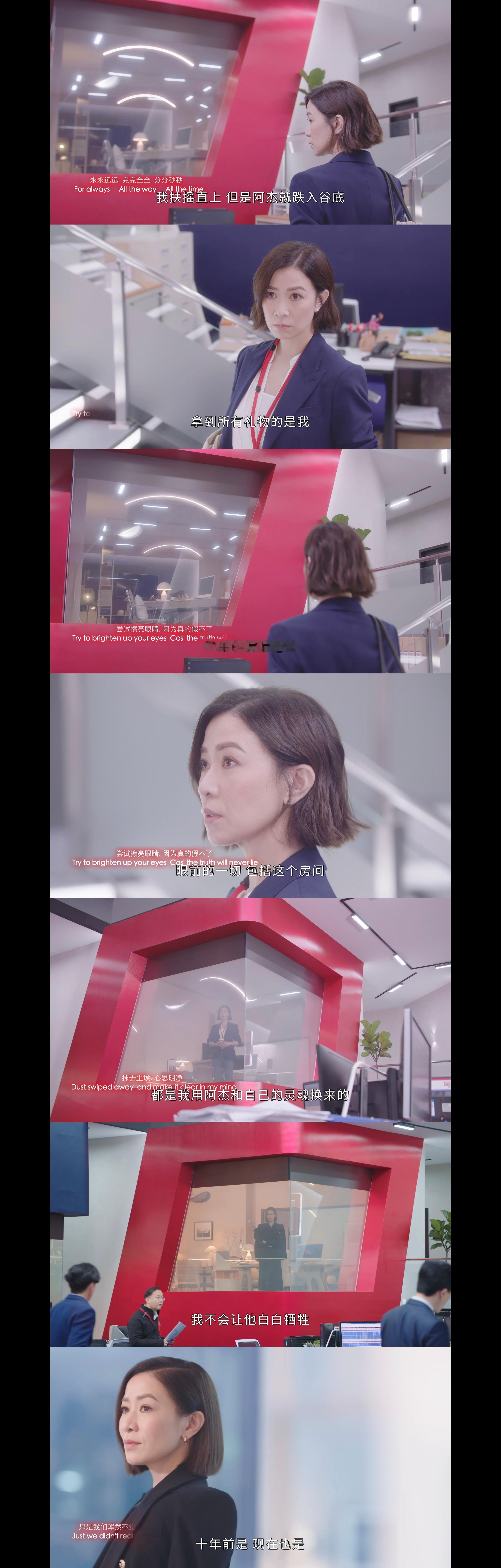 关于心结很喜欢的两段词。文慧心和陈子杰的关系几乎可以用所有名词概括,两个人嘴里嚷着什么战友啊羁绊啊就冲上来了。其实他们之间很难用某种单一的情感形容,相同的理想、事业和生活把他们调教成不管什么身份但都是一种人,对方成为生命中不可剜去的一部分。一个扶摇直上,一个跌入谷底。从原本应该共生共赢的关系变成了一方吸食另一方的血肉而存活。文慧心成为终于被人看得起的角色,但代价是永远失去搭档陈子杰,所以在新闻界的这十年,你孤独吗,贼王案到底是功成名就的推力还是苦不聊生的开始。高处不胜寒,更何况这个位置还有陈子杰的一部分,来得不易,来得付出太多,文慧心一定要稳稳当当坐下去,就算出了差错也要千方百计回来,“新闻主播文慧心”早就不止她一个人。