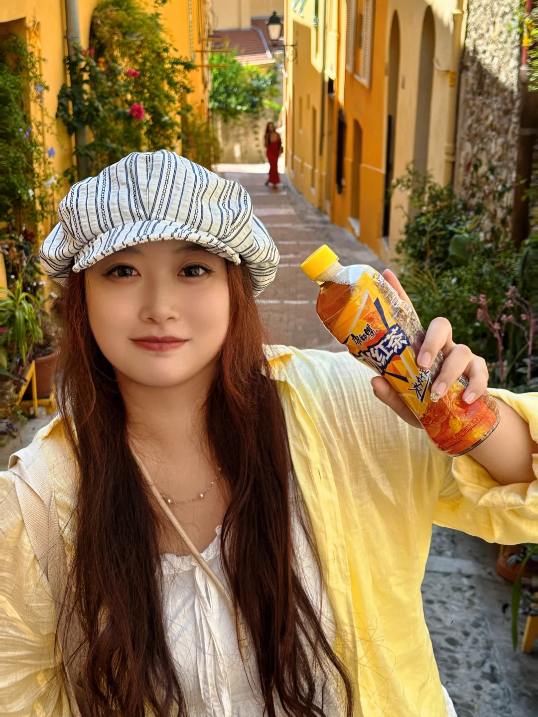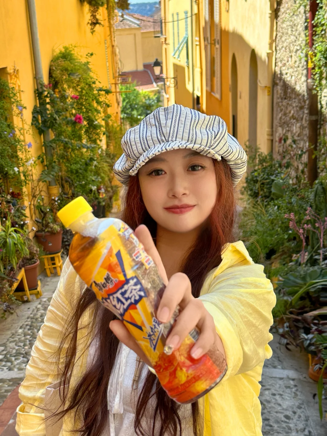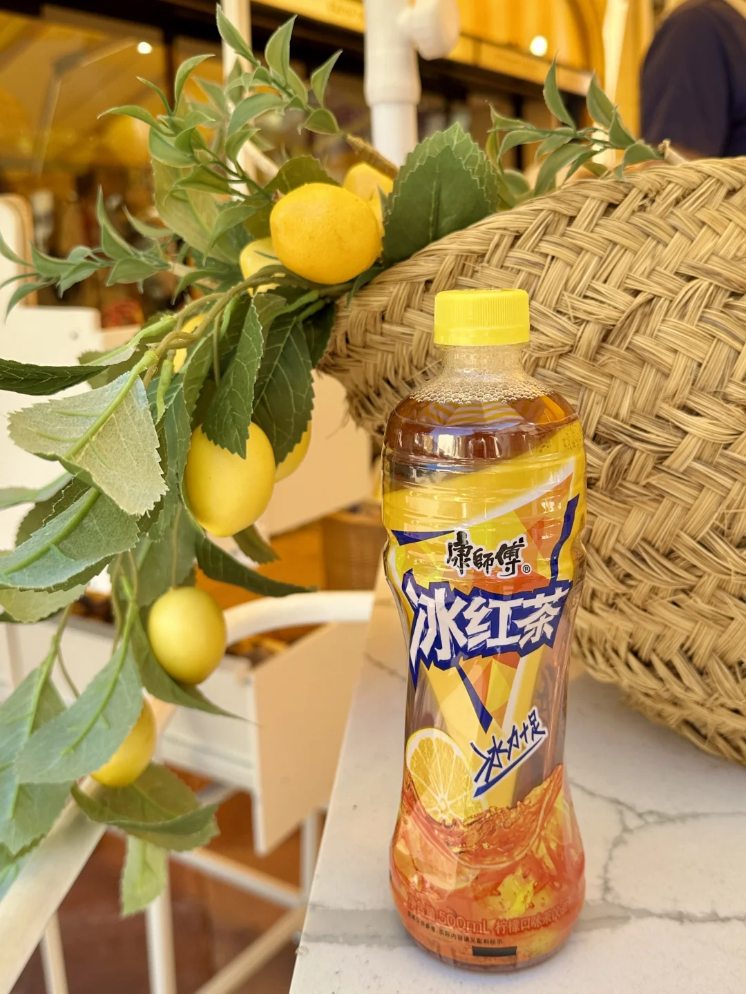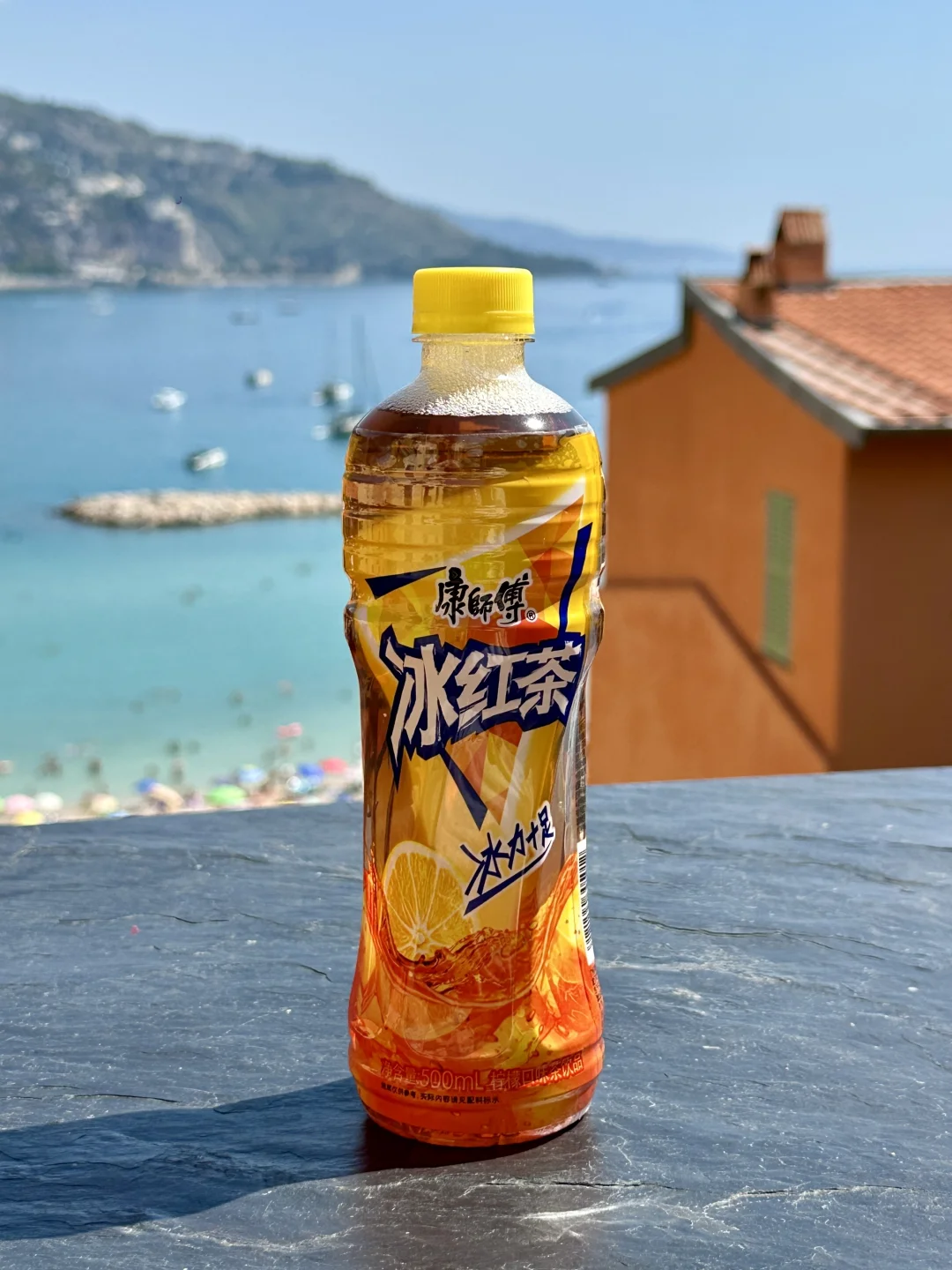 沿着海边步道走,地中海🌊蓝得发晃,风里混着柑橘香和海水咸。找了家爬满三角梅的咖啡馆坐下,点杯浓缩却嫌太苦,从包里摸出康师傅冰红茶时忽然懂了:在这里,酸甜就该是天生一对🍋