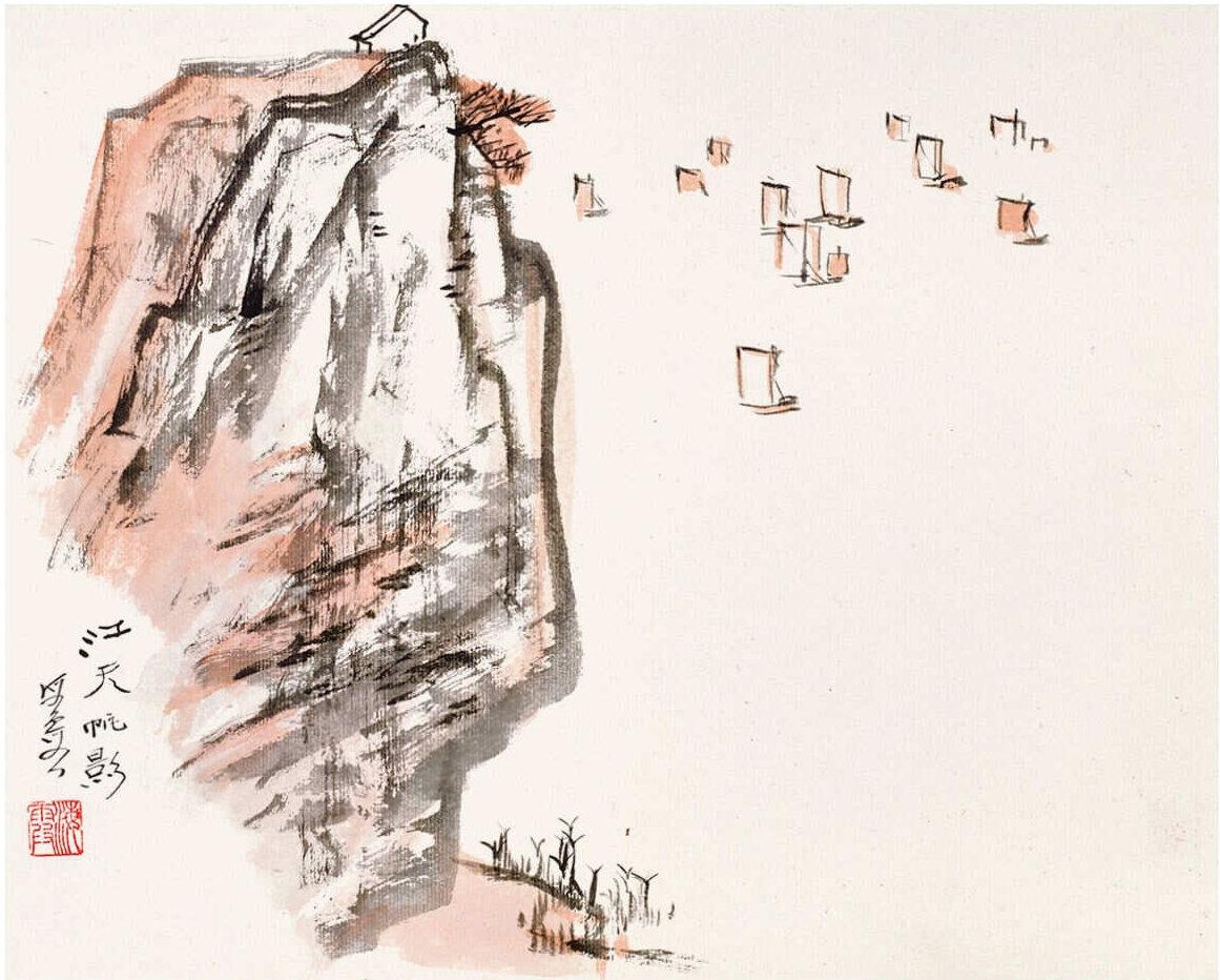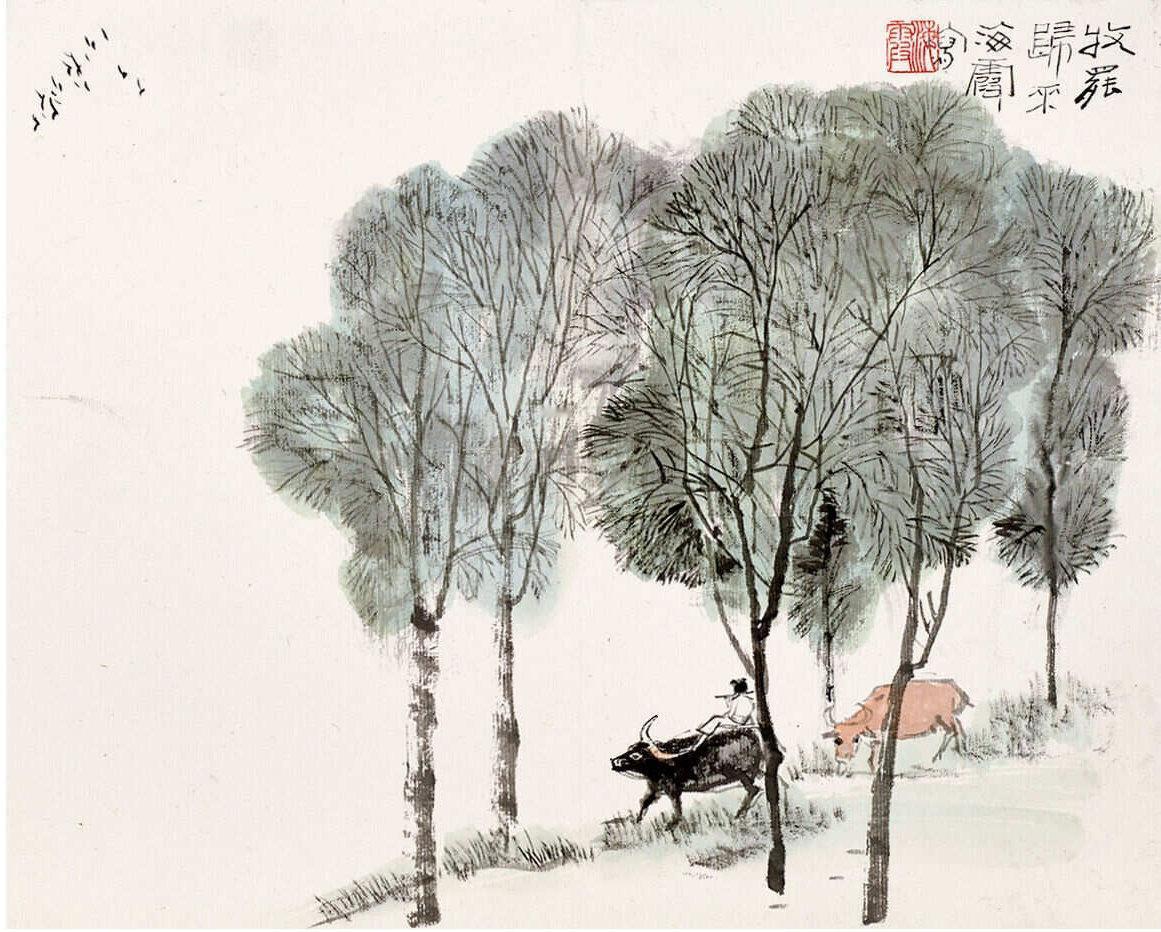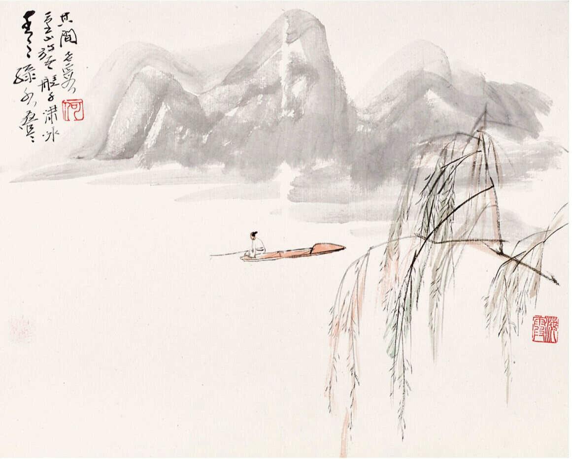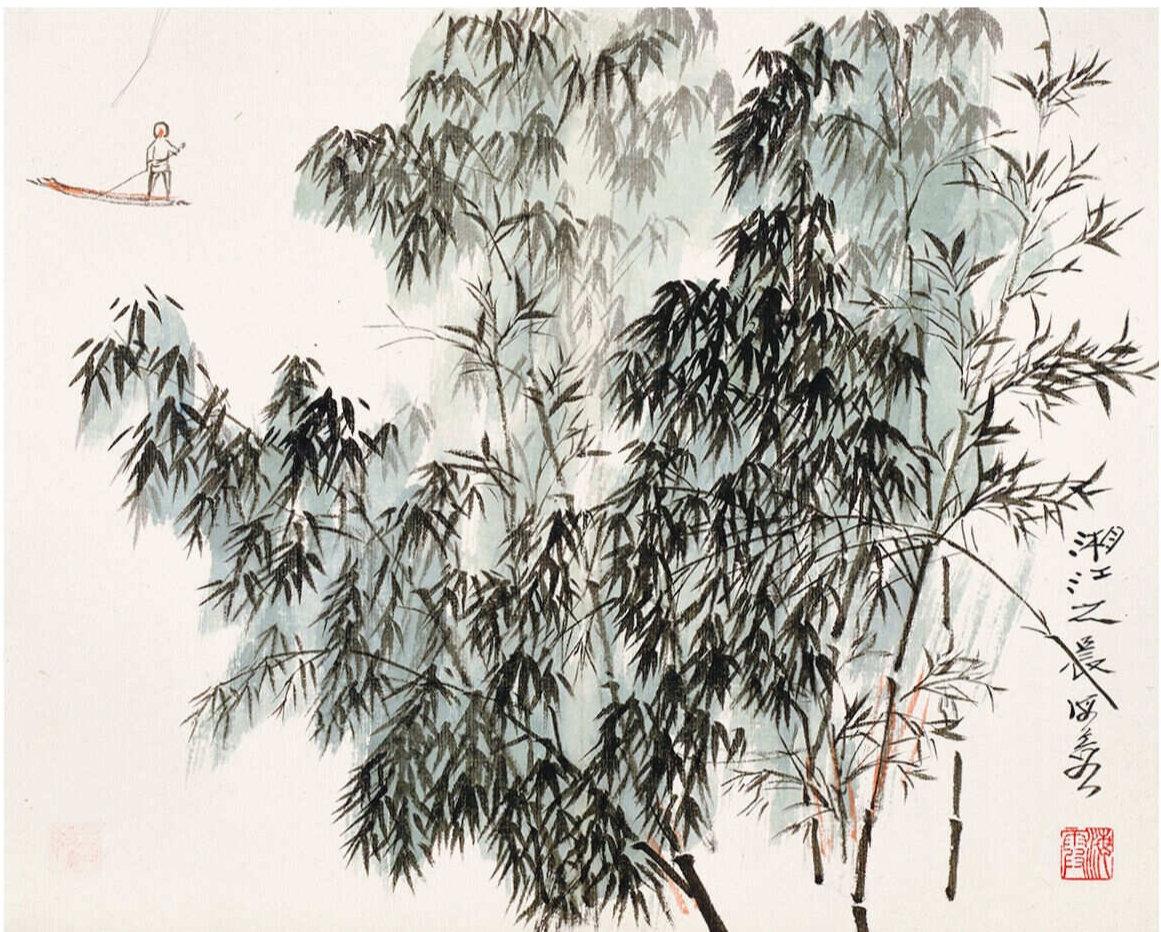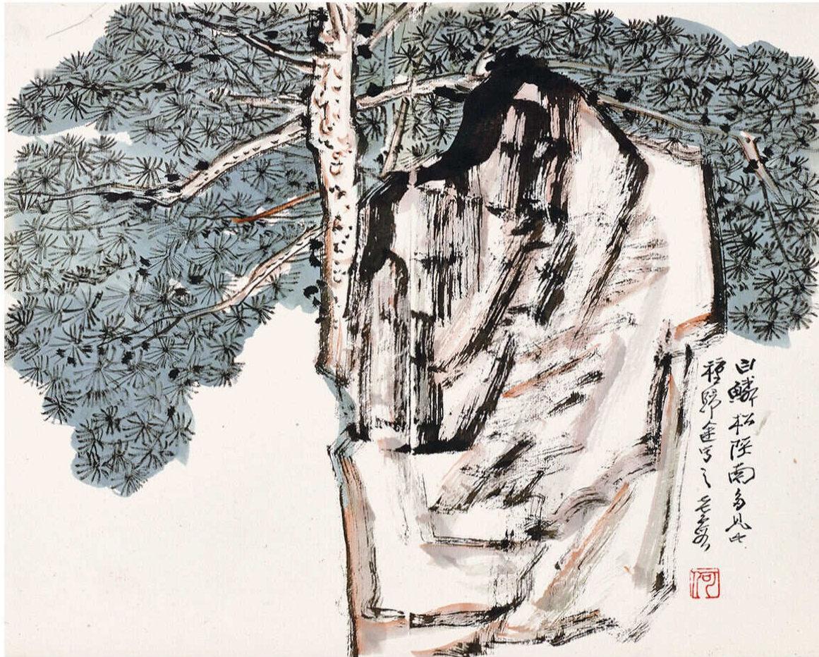 何海霞早年师从张大千,深得宋元以来北宗山水精髓。后融入写生观察与时代气息,形成了雄浑中见秀润、工致中富写意的艺术特点。他的《山水册》十二开便是典型代表,每幅虽尺幅不大,却以小见大,凝聚了对南北山川、四时景致的精炼表达。如“终南春色”以青绿点染山峦,色墨交融间透出温润生机;“松涛半似雨”运用渴笔皴擦,营造出岚气氤氲的朦胧意境,尽显意趣。 作为长安画派的重要画家,何海霞将北方画派的雄健有力与南方画派的温润秀美完美融合。他还善于将小青绿、大青绿、金碧、泼彩等多种技法融为一体,所绘金碧华山,使千山万壑金光闪闪,清雅富贵,极具风姿。其作品不仅有传统笔墨的严谨法度,又透露出对自然真景的深刻体悟,无论是气势恢宏的巨幅山水,还是精致入微的小型佳作,都能让人感受到其中蕴含的独特韵味和蓬勃生机。