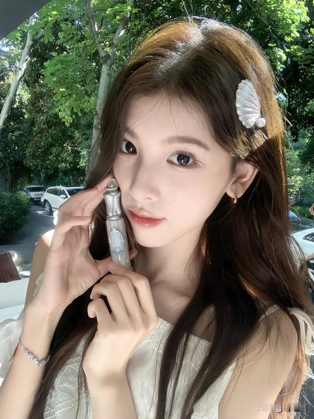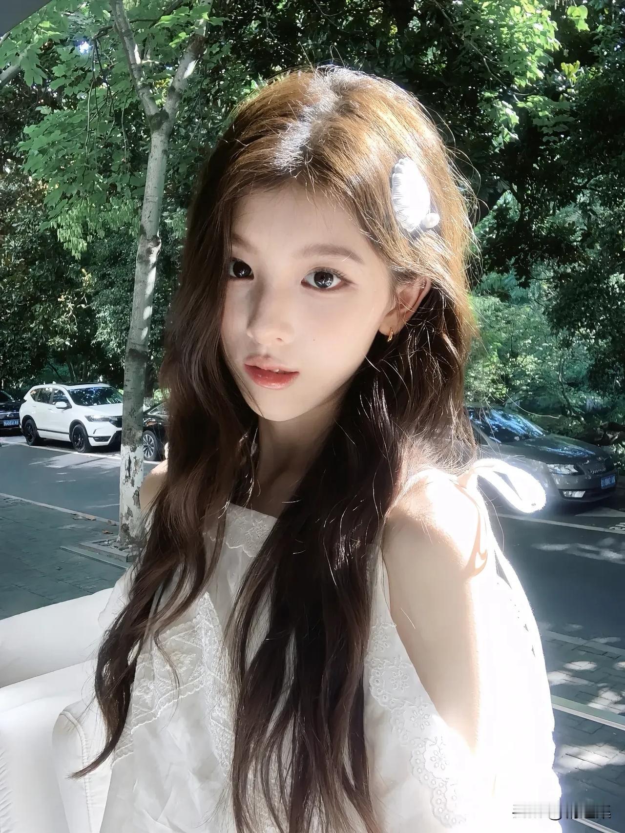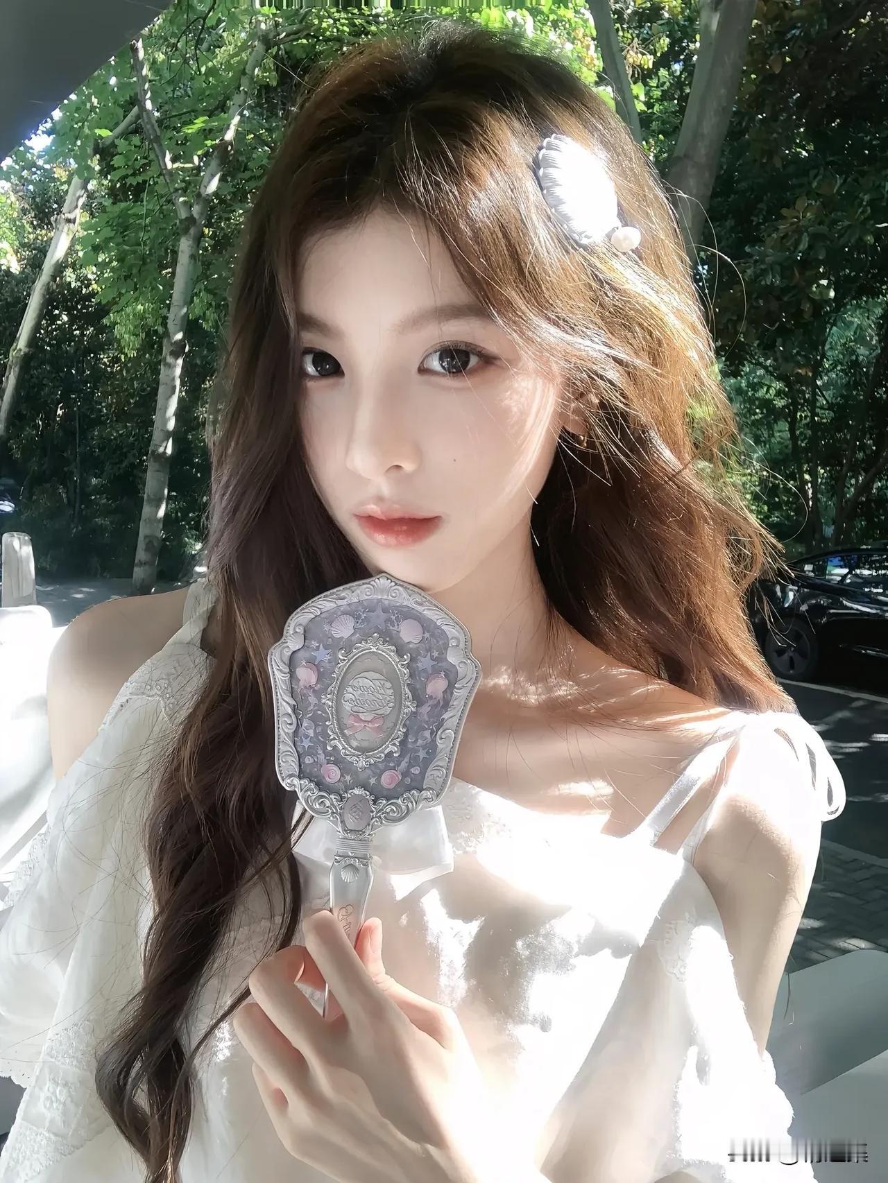 阳光下的甜美少女,白色蕾丝裙搭配珍珠发饰,温柔动人。