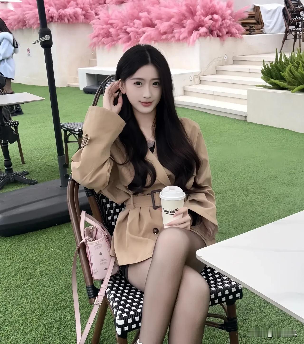 优雅咖啡馆,粉黛少女坐,绿草如茵,静享时光